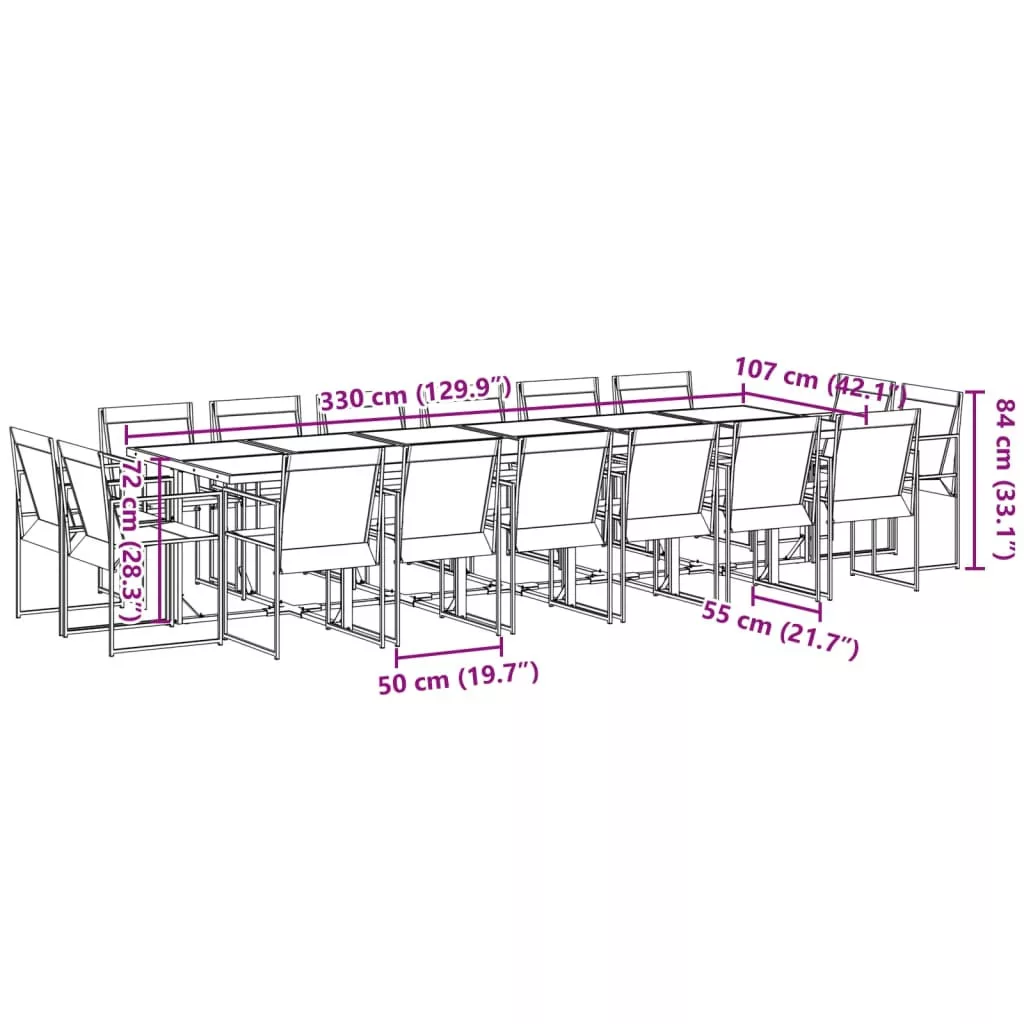 17 részes fekete textilén kerti étkezőgarnitúra