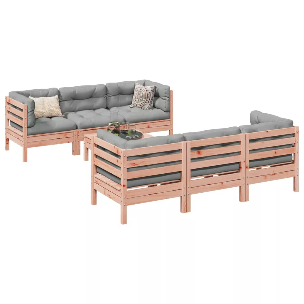 Ez a kerti ülőgarnitúra tökéletes kiegészítője lesz kertjének, teraszának vagy udvarának, kényelmes és hívogató teret biztosítva a családdal és a barátokkal való beszélgetéshez, vagy egyszerűen csak pihenéshez a szabadban. Erős és tartós anyag: A duglászfenyő erősségéről és tartósságáról ismert. Gazdag vörösesbarna színe és egyedi erezetmintája meleg és természetes hangulatot áraszt. Jó stabilitásának és időjárás-állóságának köszönhetően ideális beltéri és kültéri bútorok készítéséhez. Kényelmes ülőélmény: Ez a vastagon bélelt párnákkal kiegészített kültéri bútor kényelmes ülőélményt kínál. Jól szellőző és víz felgyülemlése elleni védelem: A rácsos kialakítás elősegíti az optimális légáramlást és hatékonyan megakadályozza a víz felgyülemlését, száraz és kényelmes ülést biztosítva. Moduláris kialakítás: Ez a kerti bútorkészlet moduláris felépítésű, így teljesen rugalmas és könnyen mozgatható, így személyre szabott kerti bútor-elrendezést alakíthat ki. Jó tudni:A kültéri bútor szépségének megőrzése érdekében javasoljuk, hogy vízálló huzattal fedje be. Maksimális 110 kg ülésenként. Legyen tudatában a nyílt tűz és más erős hőforrások kockázatának a termék környezetében.
