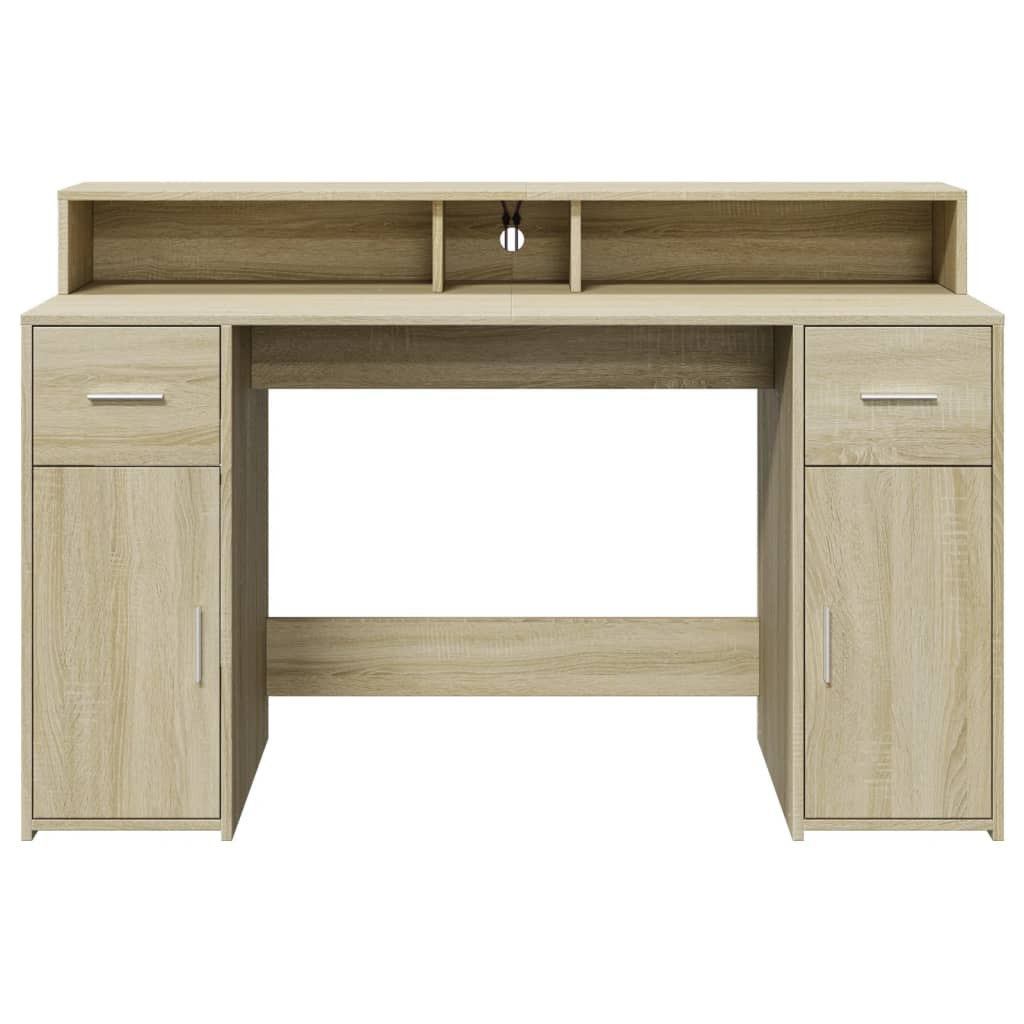 sonoma tölgy színű szerelt fa íróasztal LED-ekkel 140x55x91 cm