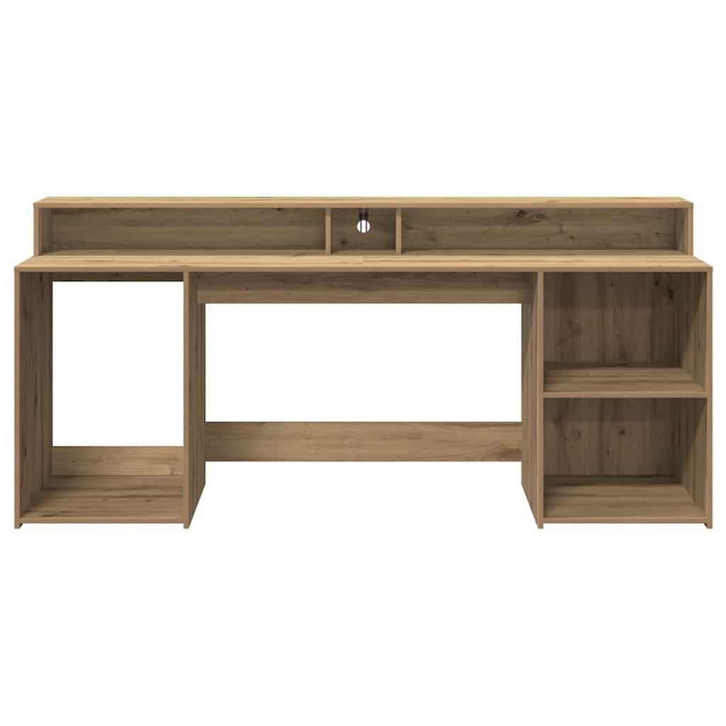 kézműves tölgy színű szerelt fa LED-es íróasztal 200x55x91 cm
