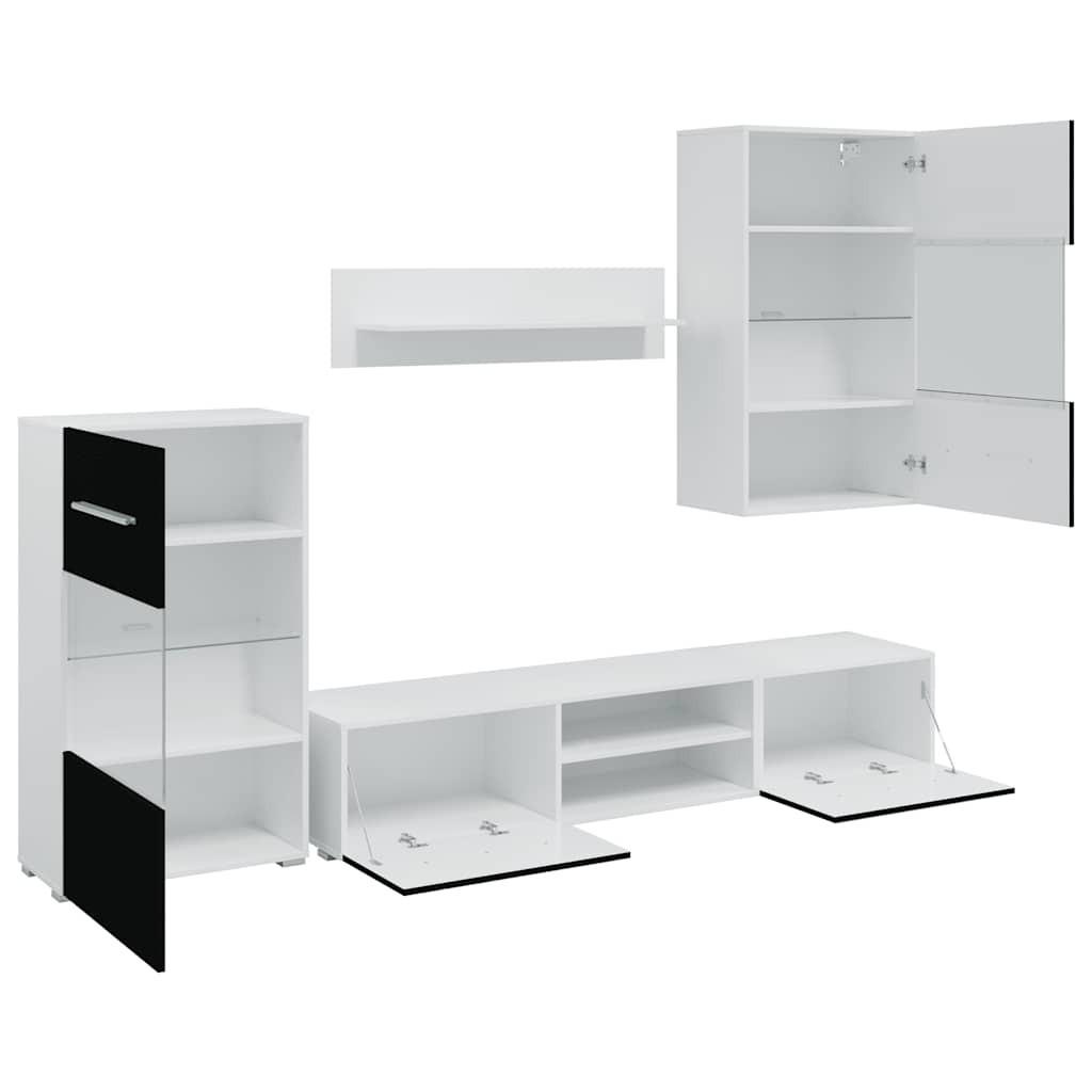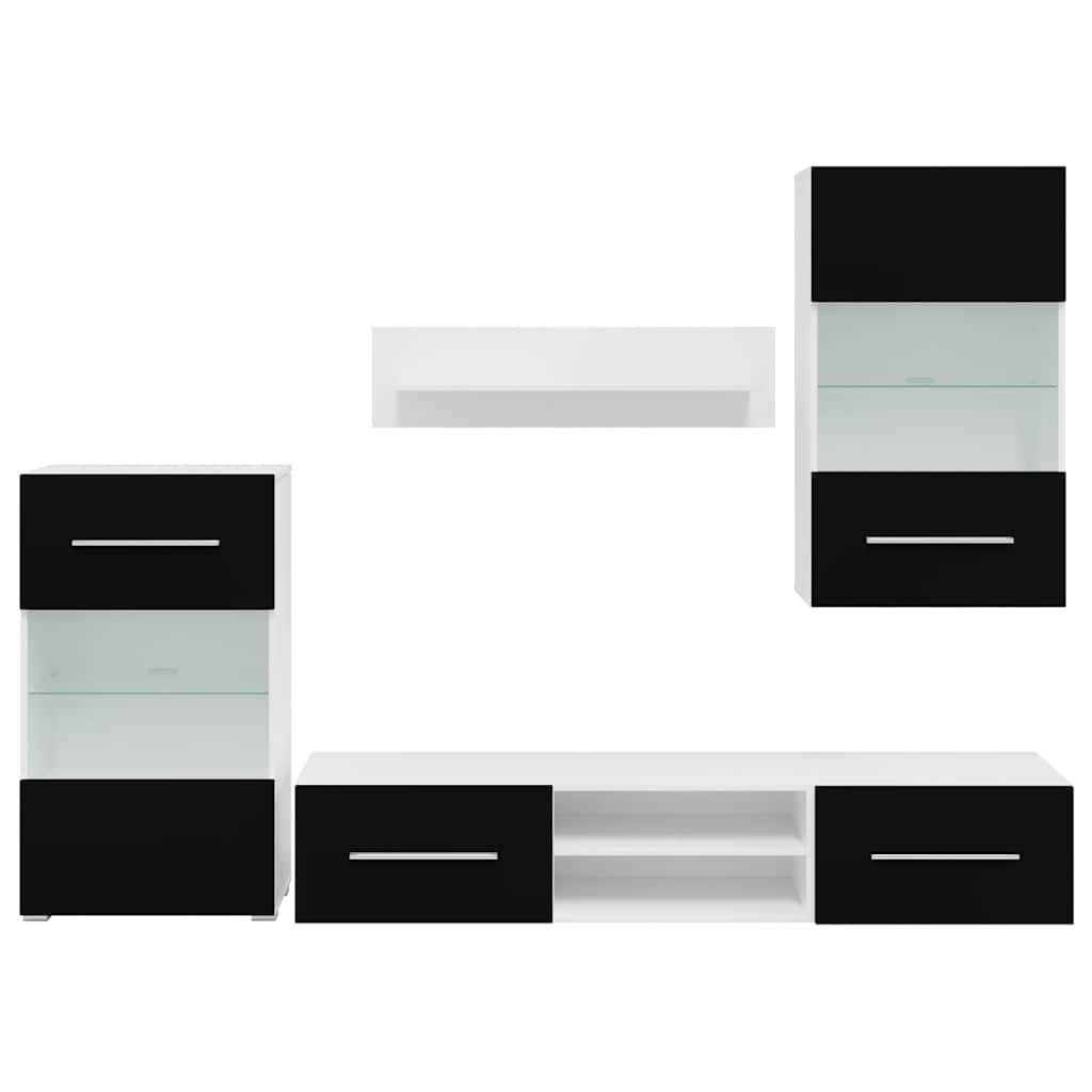 Optimalizálja a nappali helyét a stílus feláldozása nélkül ezzel a tárolóval ellátott komplett tv-szekrénnyel! Stabil és tartós anyag: A szerelt fa tartós és stabil anyag sima felülettel, amely ellenáll a nedvességnek, a vetemedésnek és a hasadásnak, így megbízható választás különféle célokhoz.Bőséges tárolóhely: A készlet tartalmaz egy fali szekrényt, egy álló szekrényt, két alacsony deszkát és egy fali polcot. Sokoldalú tárolási lehetőséget kínál multimédiás eszközök, könyvek és kisebb tárgyak számára, miközben dekoratív kijelzőknek is helyet biztosít.Modern esztétika: Ez a kollekció elegáns, modern dizájnnal, sima felületekkel és kifinomult hangsúlyokkal gazdagítja a tereket, és zökkenőmentesen illeszkedik a legkülönbözőbb stílusú dekorációkhoz.Továbbfejlesztett funkcionalitás: A TV-szekrényeknek lefelé nyíló ajtajai vannak a rejtett tároláshoz. A fali és álló szekrények részben üvegezett ajtókkal és üvegpolccal, valamint energiahatékony LED-világítással rendelkeznek, ami egyszerre praktikus és elegáns.Helytakarékos kialakítás: Ez a fali vitrines szekrénysor hatékonyan maximalizálja a nappali helyét a stílus feláldozása nélkül, kompakt, mégis funkcionális megoldást kínálva a modern élethez. Jó tudni:Az alacsony deszka 2 szekrényből áll. Ez a készülék nem használható olyan személyek (beleértve a gyermekeket) által, akiknek csökkent fizikai, érzékszervi vagy mentális képességeik vannak, vagy akik tapasztalat és tudás hiányában vannak, kivéve, ha felügyeletet vagy útmutatást kaptak egy felelős személytől a készülék biztonságos használatáról. Ez a termék nem játék. Ne engedd, hogy a gyermekek játsszanak a készülékkel. Csak beltéri használatra készült.