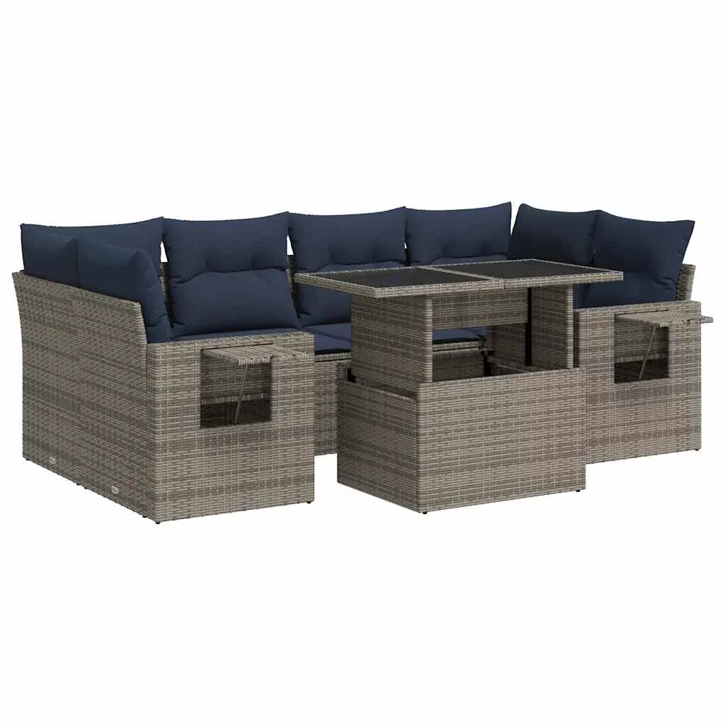 Ez a kerti ülőgarnitúra tökéletes kiegészítője lesz kertjének, teraszának vagy udvarának, kényelmes és hívogató teret biztosítva a családdal és a barátokkal való beszélgetéshez, vagy egyszerűen csak pihenéshez a szabadban.Tartós anyag: A PE rattan, más néven polyrattan, egy erős, kevés karbantartást igénylő szintetikus anyag, amely úgy néz ki, mint a természetes rattan. Könnyű, könnyen tisztítható, tartóssága és időjárásálló tulajdonságai miatt gyakran használják kültéri bútorok készítéséhez.Tárolási funkció vízálló zsákkal: Minden kerti ülés tárolóhellyel rendelkezik az ülés alatt, amely egy vízálló zsákkal van kiegészítve a párnák, játékok és egyéb tárgyak tárolására. A belső zsák felső huzattal rendelkeznek, és a nagyobb stabilitás érdekében tépőzárral biztonságosan az ülésekhez rögzíthetők.Kényelmes kisasztal: Ez a kerti bútor összecsukható kisasztallal rendelkezik, a gázrugóval, amely kényelmes helyet biztosít, hogy a legfontosabb dolgokat könnyen elérhető helyen tartsa.Levehető és mosható huzat: Ezek az ülőpárnák levehető huzattal rendelkeznek az egyszerű mosás és karbantartás érdekében.Moduláris kialakítás: Ez a kerti bútorkészlet moduláris felépítésű, így teljesen rugalmas és könnyen mozgatható, így személyre szabott kerti bútor-elrendezést alakíthat ki.Jó tudni:A kültéri bútor szépségének megőrzése érdekében javasoljuk, hogy vízálló huzattal fedje be.