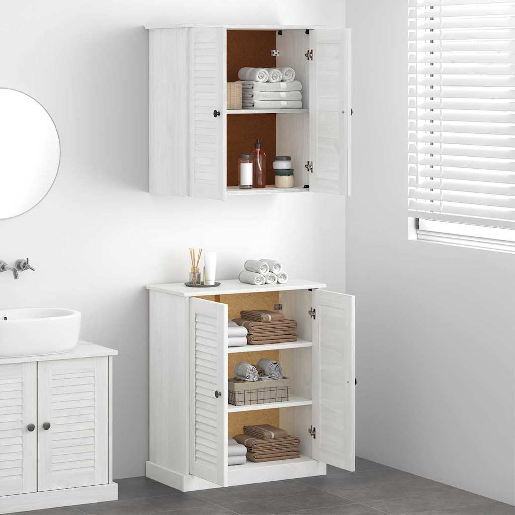 A Rusztikus Fürdőszobabútor Készlet remekül van megcsinálva, és ötvözi a funkciót a stílussal bármilyen fürdőszobához. A letisztult téglalap forma és a sima felület eleganciát sugall, így tökéletes választás azoknak, akik kis pluszt szeretnének a terükbe. A tompa matt felülete miatt a tároló hely jól mutat, miközben mindent rendezetté varázsol. Ez nem csupán egy tárolóegység; hanem egy sokoldalú középpont, amely feldobja a szoba hangulatát, biztosítva, hogy a fürdőszobád praktikus és stílusos legyen. Erős Fa Építés Tömör fenyőfából és mérnöki faforgácsból készült, ez a bútor szett nemcsak jól néz ki, hanem nagyon tartós is. A tömör fa tartós alapját biztosítja, így megbízható lehetőség a fürdőszobai alapcuccok tárolására, anélkül, hogy elveszítené rusztikus báját. Praktikus Polcok A deszkapolcokkal bővítve ez az egység rengeteg helyet biztosít a törölközőidnek, piperecikkeidnek és még sok minden máshoz. Azért tervezte, hogy egyszerű és rugalmas legyen, így könnyen tudod rendszerezni, amire szükséged van. Könnyen Elérhető Ajtók A zsanéros ajtók lehetővé teszik, hogy könnyedén megkapd, amire szükséged van, miközben mindent eltakar, szóval rendezettebbé varázsolja a helyet. Ez a dizájn a kényelmet célozza, de jól is mutat, biztosítva, hogy a felület szép és egységes legyen. Kényelmes Gombok A fém gombok remek érintést adnak, megkönnyítve az ajtók nyitását és csukását. Kényelmes használni őket a mindennapokban, és tökéletesen illeszkednek a szett barátságos, rusztikus stílusához. Biztonsági Tippek A nyugalmad érdekében praktikus útmutatásokkal rendelkezik, javasolva, hogy rögzítsd a magas bútorokat a falhoz, hogy megakadályozd a felborulást. Ez alapvető a fürdőszoba biztonságának és rendezettségének megőrzéséhez, extra nyugalmat adva a családoknak és felhasználóknak.