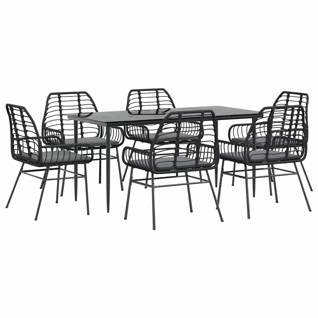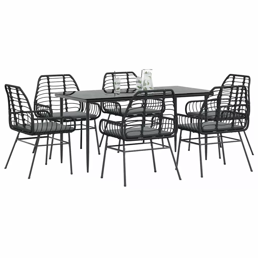 7 részes fekete polyrattan üveg kerti étkezőgarnitúra párnákkal