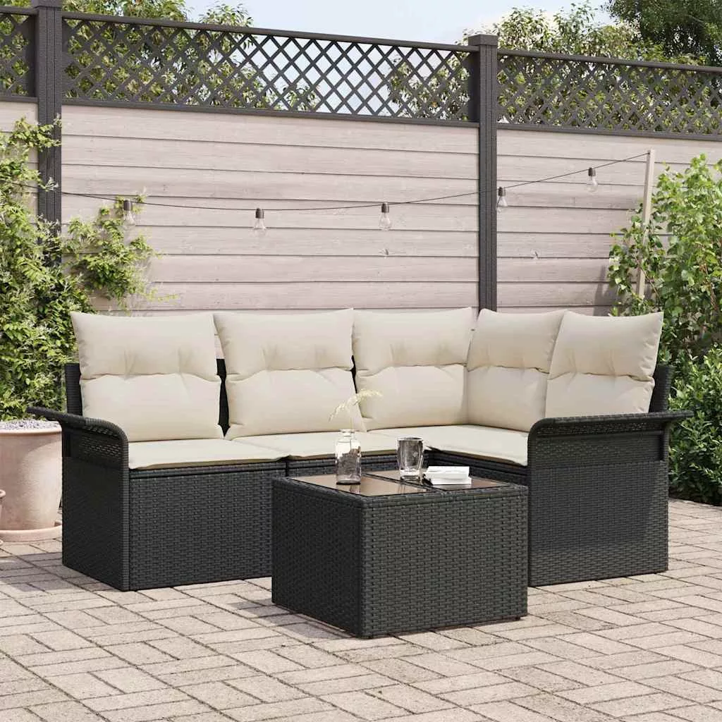 Kerti Kanapé Szett párnával 5 pcs Fekete polirattan