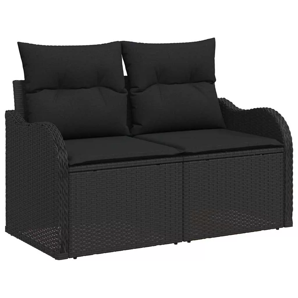 Kerti Kanapé Szett 9 pcs Fekete polirattan