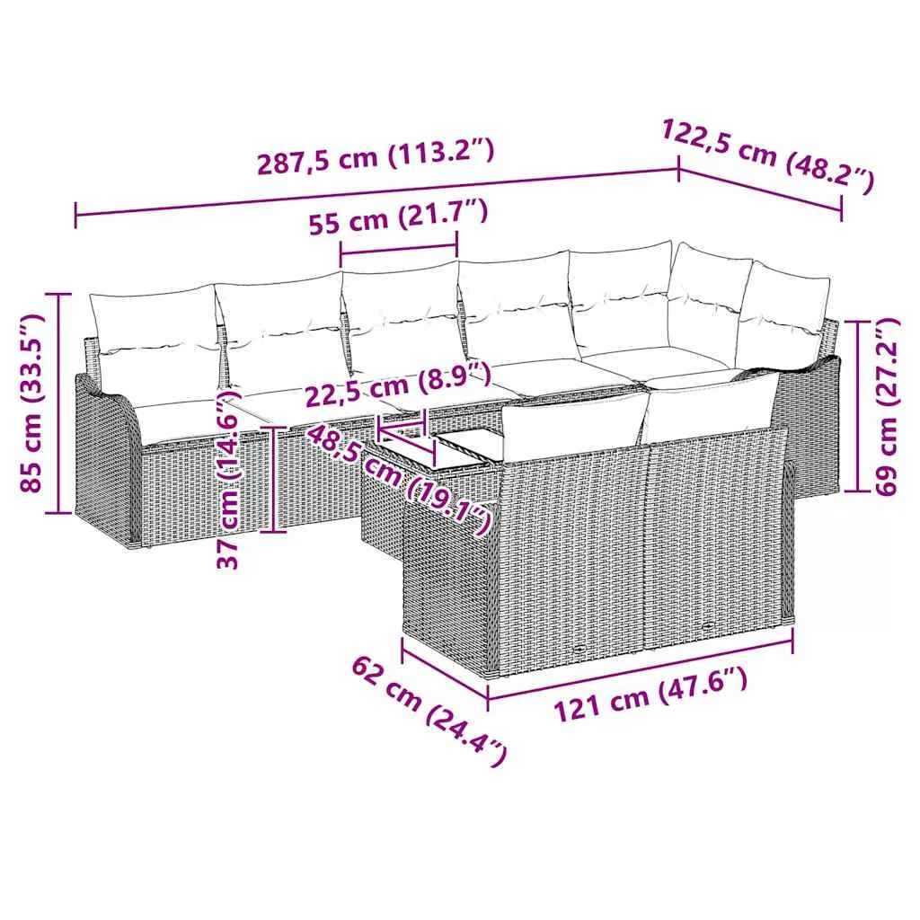 • 9 x Háttámpárna: 55 x 55 cm (HxSz)