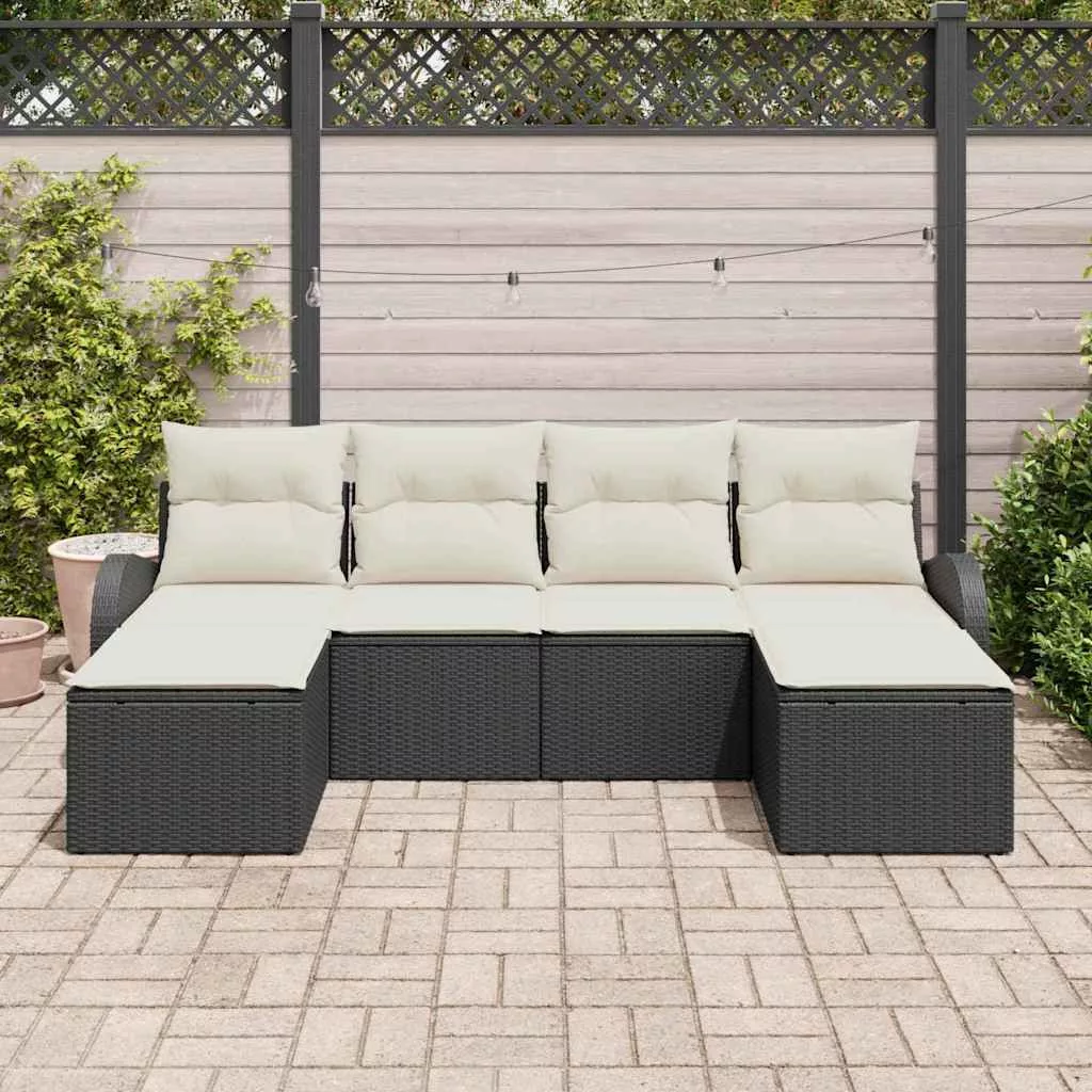 Kerti Kanapé Szett párnával 6 pcs Fekete Poly Rattan