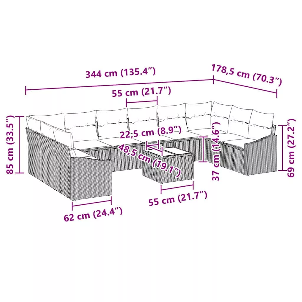 Ez az elegáns Kerti Kanapécsoport egy modern csavart ad a klasszikus kültéri ülőhelyeknek, tiszta vonalaival és minimalista varázsával. Teraszokra vagy kertekbe tervezve, hívogató pihenőhelyet nyújt, tökéletes vendégek számára vagy családi kikapcsolódásra. A poli rattan keret egy mai érzetet ad, miközben a bőséges ülőfelület biztosítja a kényelmet minden alkalomra. Anyagok: A kanapészett erős poli rattan szerkezete híres a tartósságáról és a kinézetéről. Minden időjárásban jól bírja a terhelést, ellenáll a brutális UV-sugárzásnak és a nedvességnek. Ez a kiváló anyag hosszú életet ígér, megőrzi a kinézetét, és minimális karbantartást igényel. Komponensek: Minden darab fontos, és a kanapészett jól megtervezett elemeket tartalmaz, mint pl. puha poliészter párnák, habbal töltött ülőpárnák cipzárral a könnyebb tisztításért. A szett minden része a kényelem és a stílus jegyében készült, hogy a kültéri tered a te kis menedéked legyen. Funkciók / Használat / Dizájn: A szett sokoldalúsága a magasságban állítható asztallapban rejlik, ami simán átmegy kávézóasztalból étkezési magasságba, alkalmazkodva a társasági eseményekhez. Moduláris jellege miatt rengeteg elrendezést lehet választani, igazodva a változó igényeidhez. Ajánlott felhasználás: Tökéletesen passzol kerthelyiségekhez vagy tágas teraszokhoz, modern dizájnja mindenféle környezetbe illik. Ideális családi időtöltésekre vagy nagyobb bulikra, a szett funktionalitást és stílust hoz a kültéri dekorációdba. Tartós felépítése megfelel a szezonális időjárás viszontagságainak. Karbantartás és használat: A kanapészetted karbantartása egyáltalán nem macerás. Érdemes védőhuzatot használni, ha hosszabb ideig nem használod vagy ha rossz idő van, így tovább bírja. A levehető párnahuzatok könnyű tisztíthatóságot biztosítanak, így a szett karbantartása minimális erőfeszítést igényel. A gondoskodás könnyűvé teszi, hogy a szett jó állapotban maradjon, így több időt tölthetsz a kint pihenéssel.