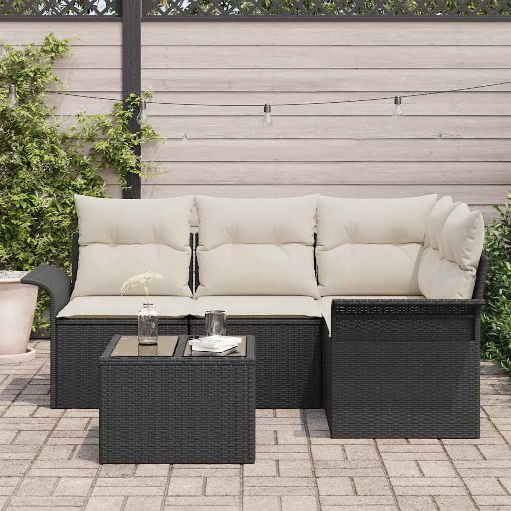 Kerti Kanapé Szett tárolóval 5 pcs Fekete polirattan