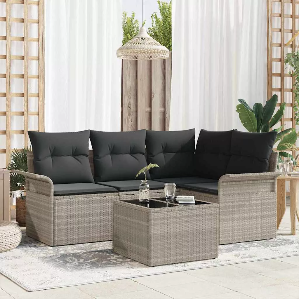 Kerti Kanapé Szett tárolóval 5 pcs Világosszürke polirattan