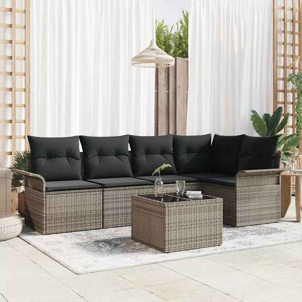 Kerti Kanapé Szett párnával tárolóval 6 pcs Szürke Poli rattan