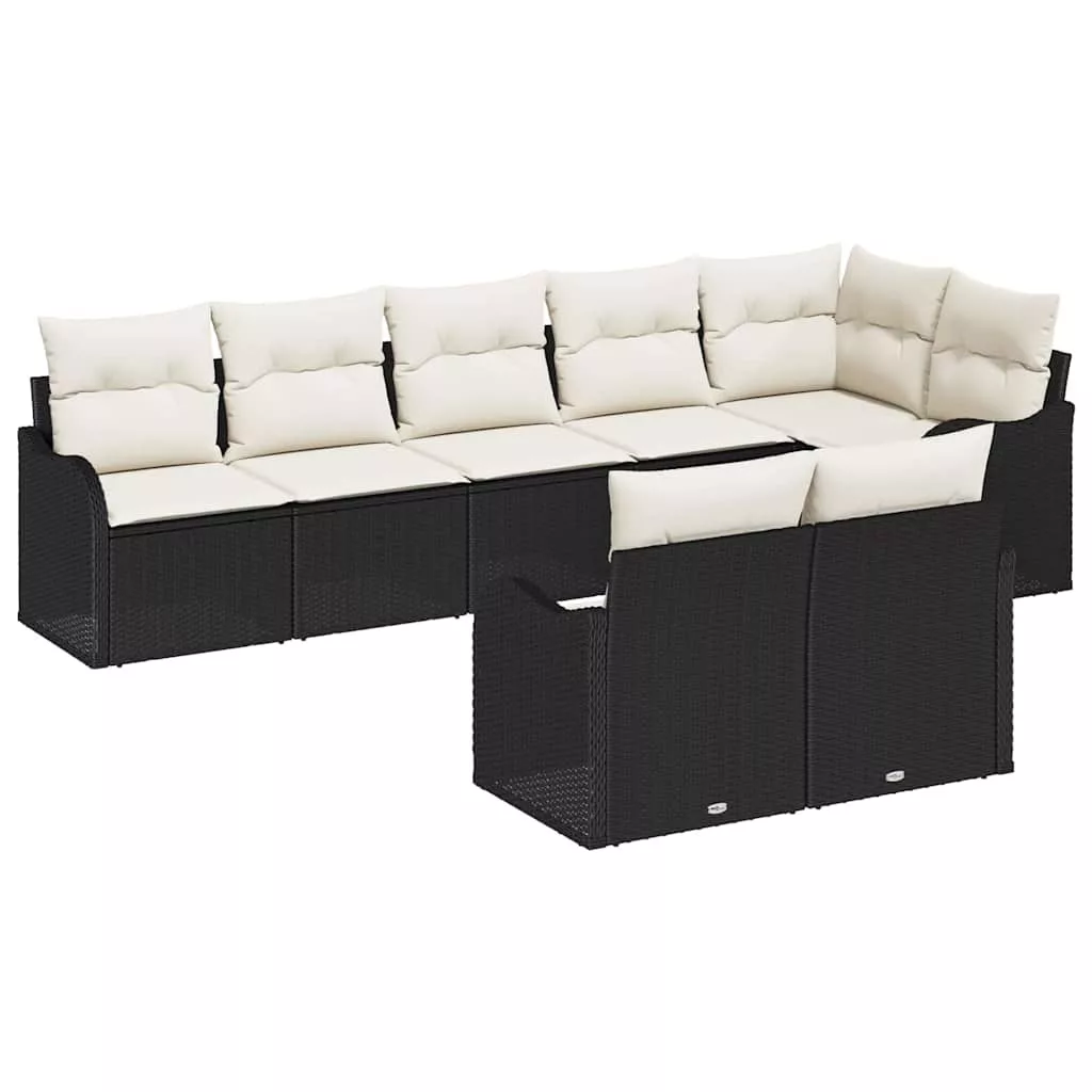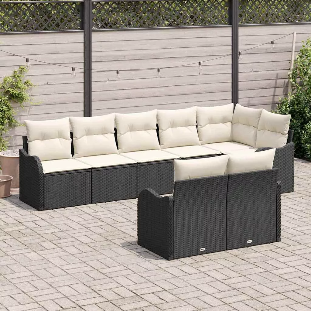 Kerti Kanapé Szett párnával 8 pcs Fekete és fehér Poli rattan