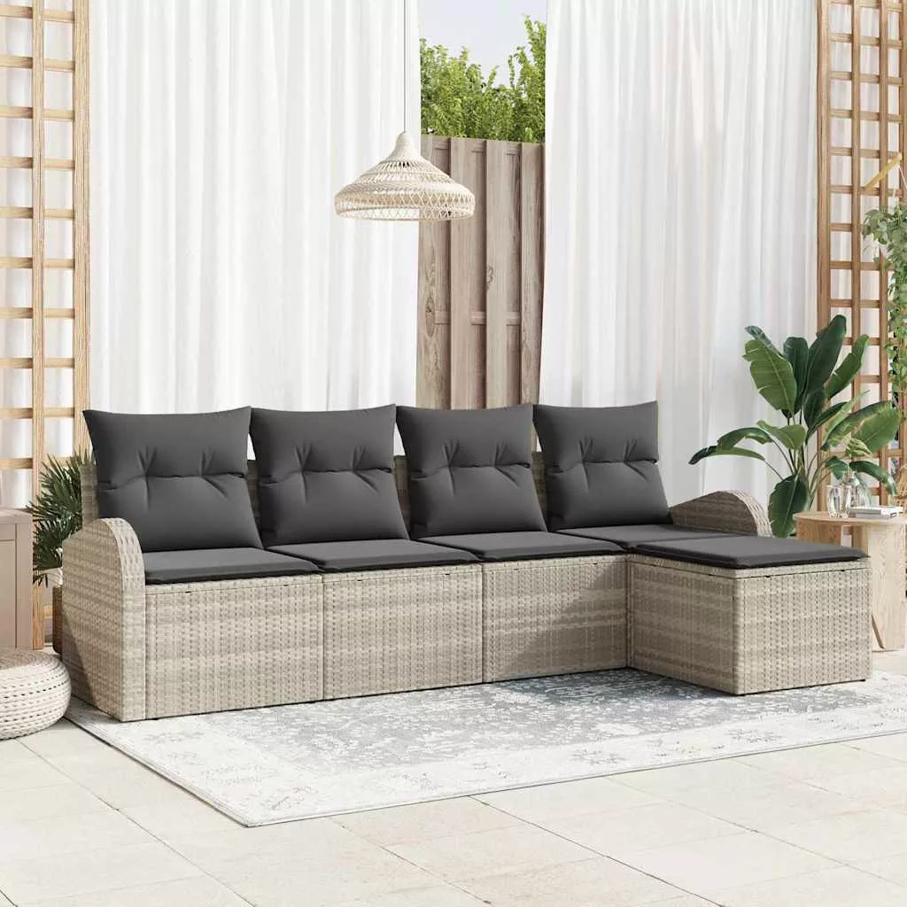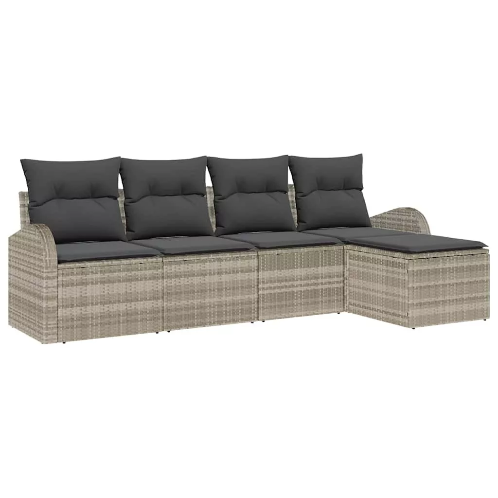 Kanapé Szett párnával tárolóval 5 pcs Világosszürke polirattan