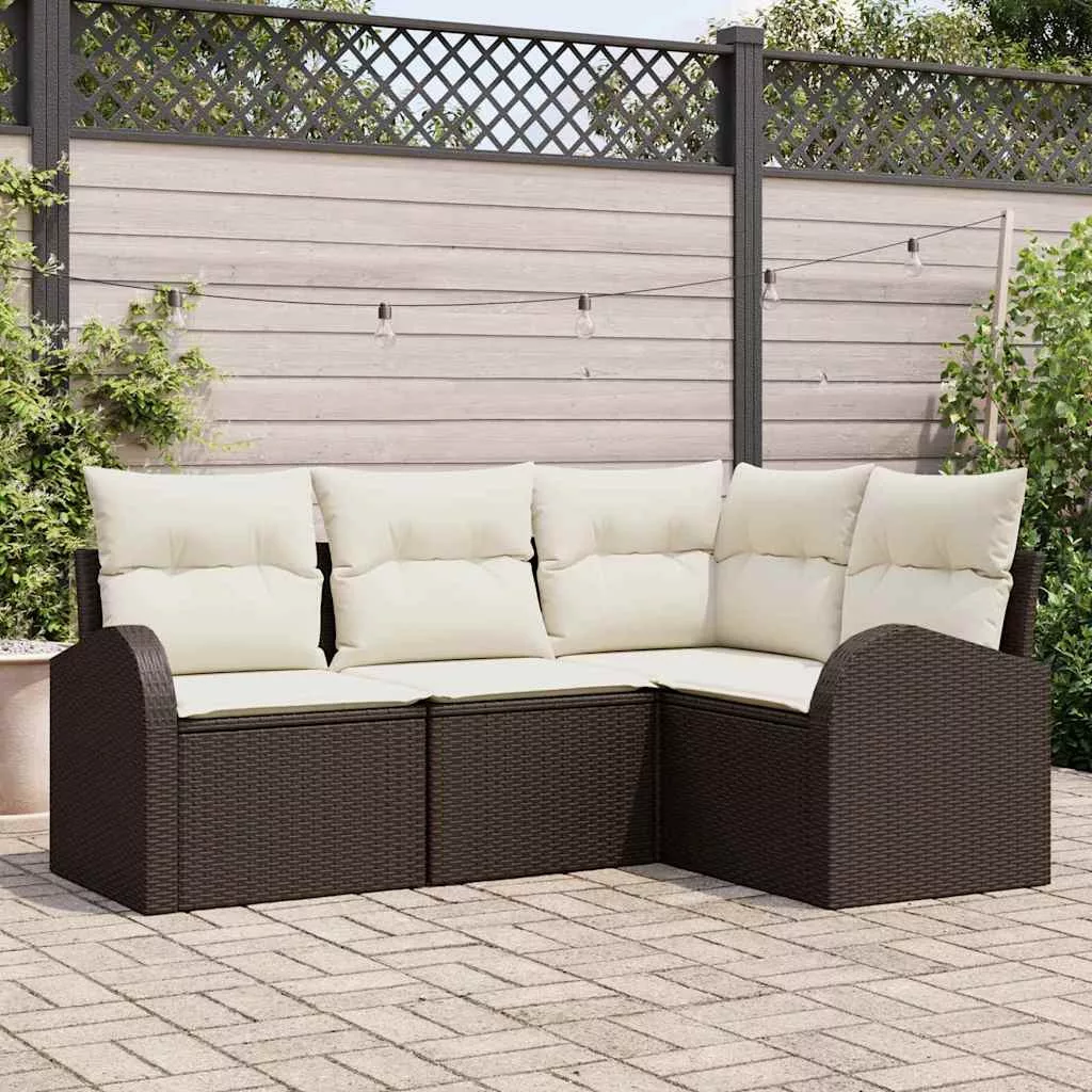 vidaXL Kerti Kanapé Szett párnával 4 pcs Barna és fehér polirattan