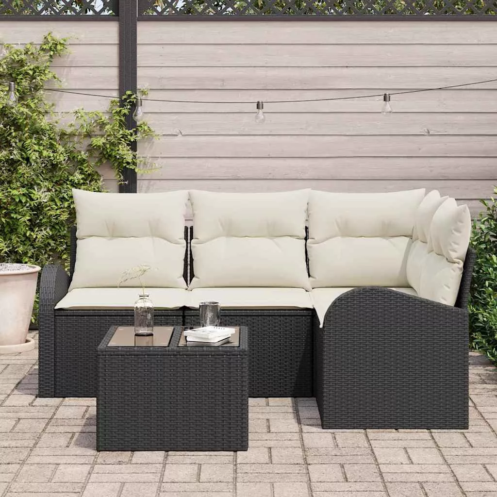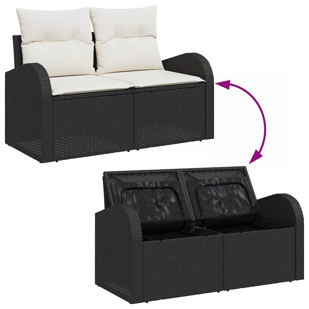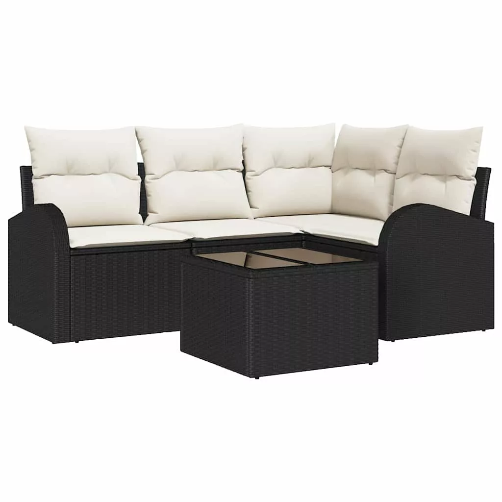 Kerti Kanapé Szett párnával 5 pcs Fekete és Fehér polirattan