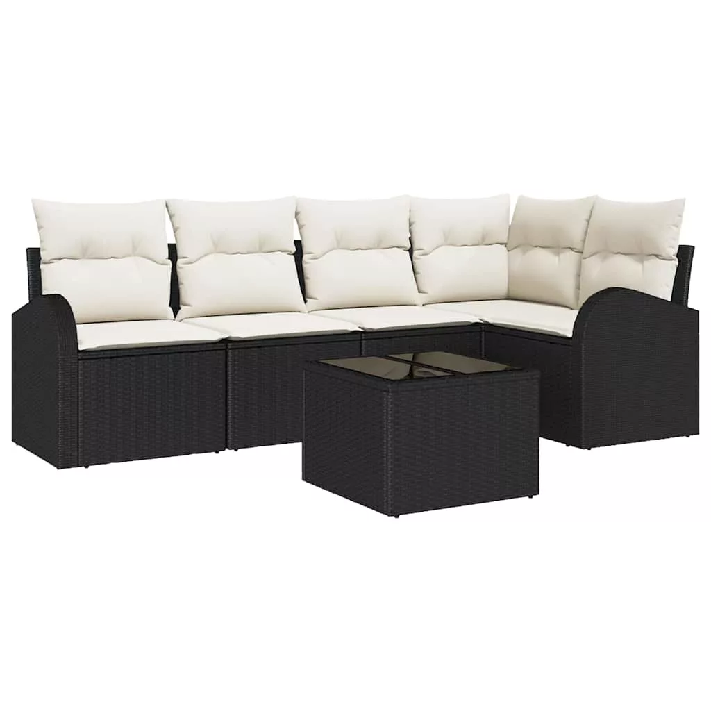 vidaXL Kerti Kanapé Szett párnával 6 pcs Fekete és Fehér polirattan