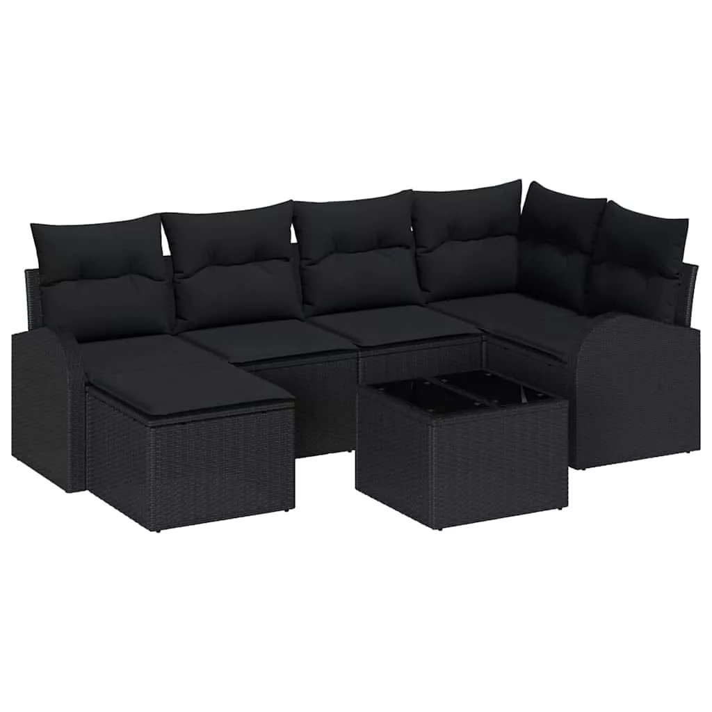 vidaXL Kanapé Szett párnával tárolóval 7 pcs Fekete polirattan