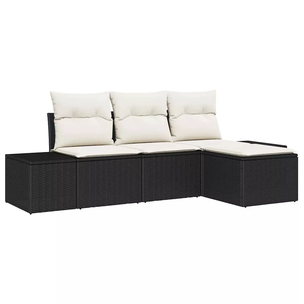 Kerti Kanapé Szett párnával 4 pcs Fekete és Krém polirattan