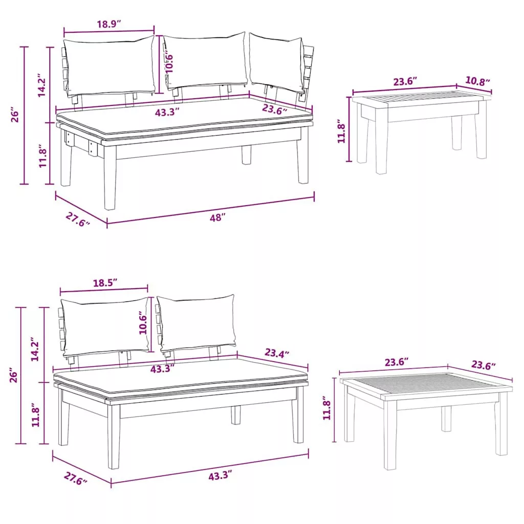 • 2 x Asztal: 60 x 60 x 30 cm (HxSZxM)