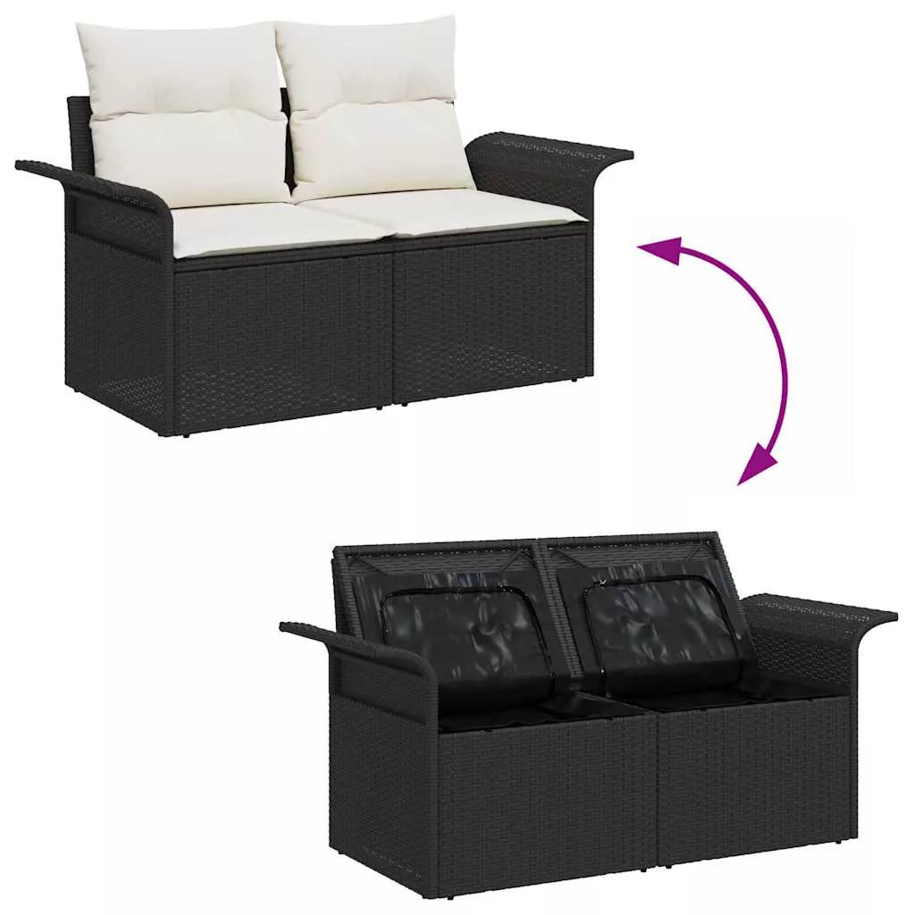 Kerti Kanapé Szett párnával tárolóval 5 pcs Fekete Poly Rattan