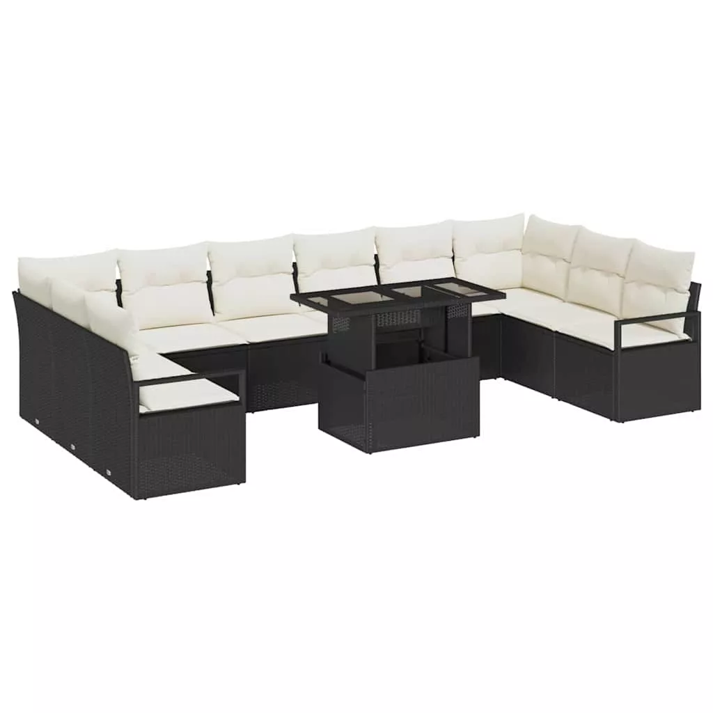 Kerti Kanapé Szett párnával tárolóval 11 pcs Fekete polirattan