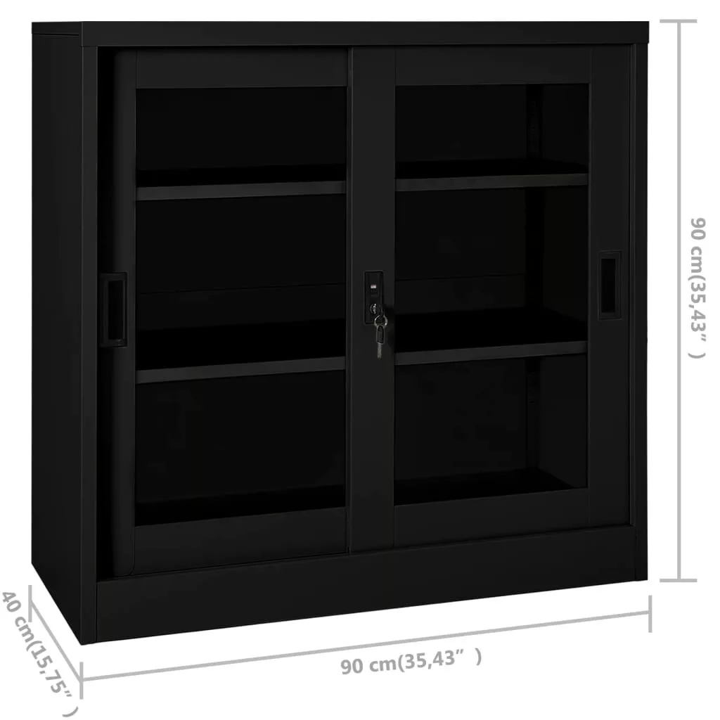 fekete acél tolóajtós szekrény 90 x 40 x 90 cm