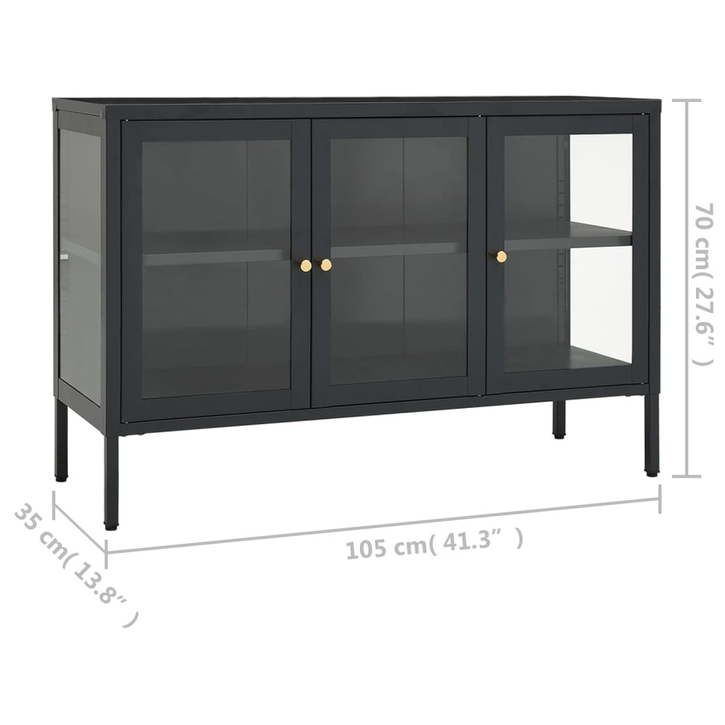 antracitszürke acél és üveg tálalószekrény 105 x 35 x 70 cm