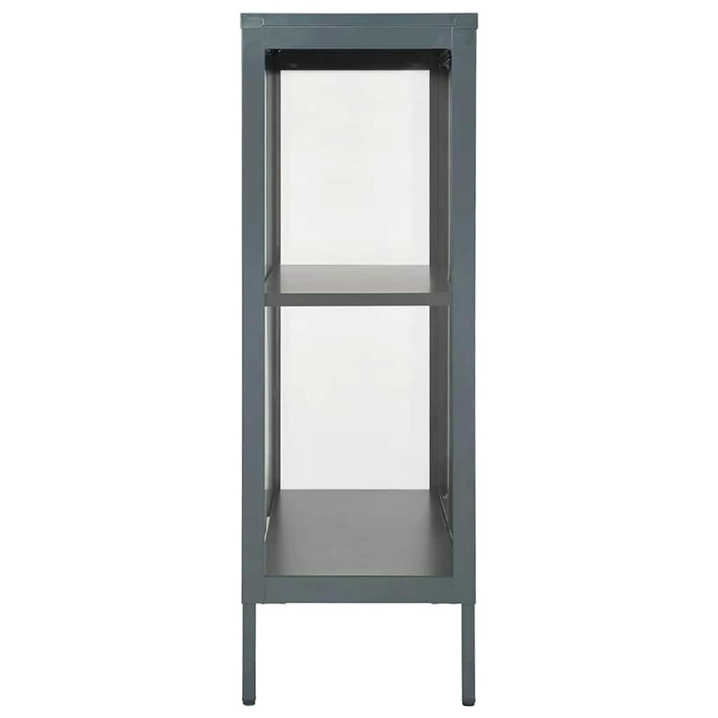 antracitszürke acél és üveg tálalószekrény 75 x 35 x 105 cm