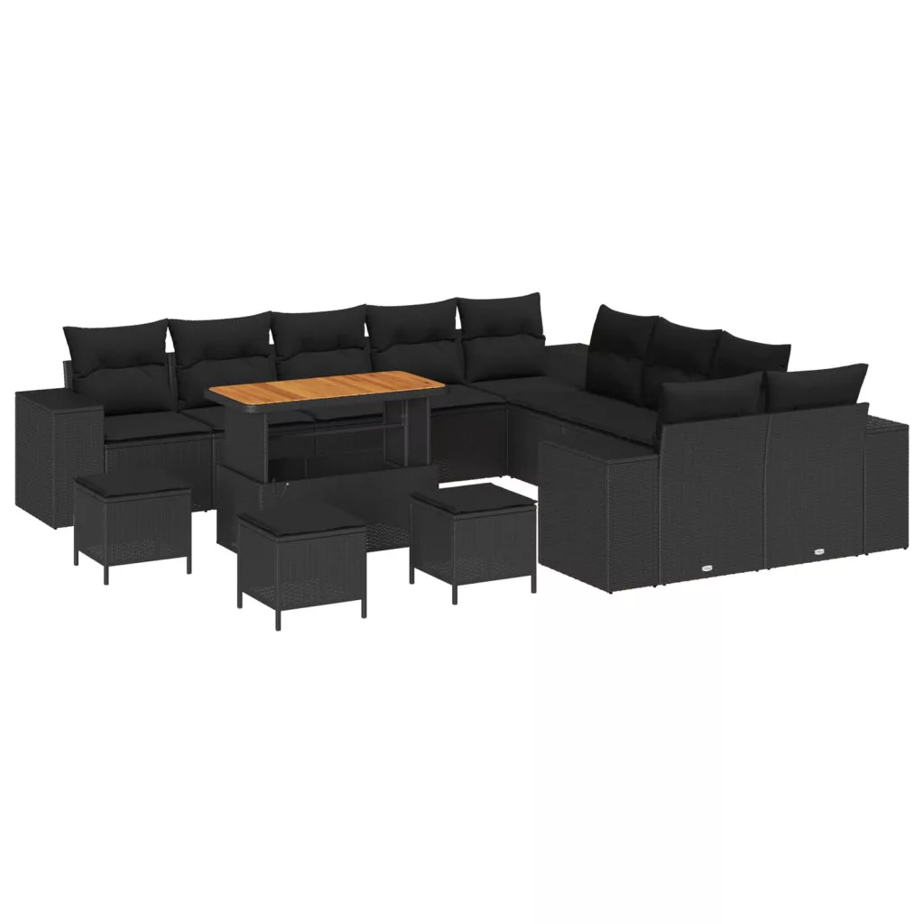 Kerti Kanapé Szett párnával 14 pcs Fekete polirattan
