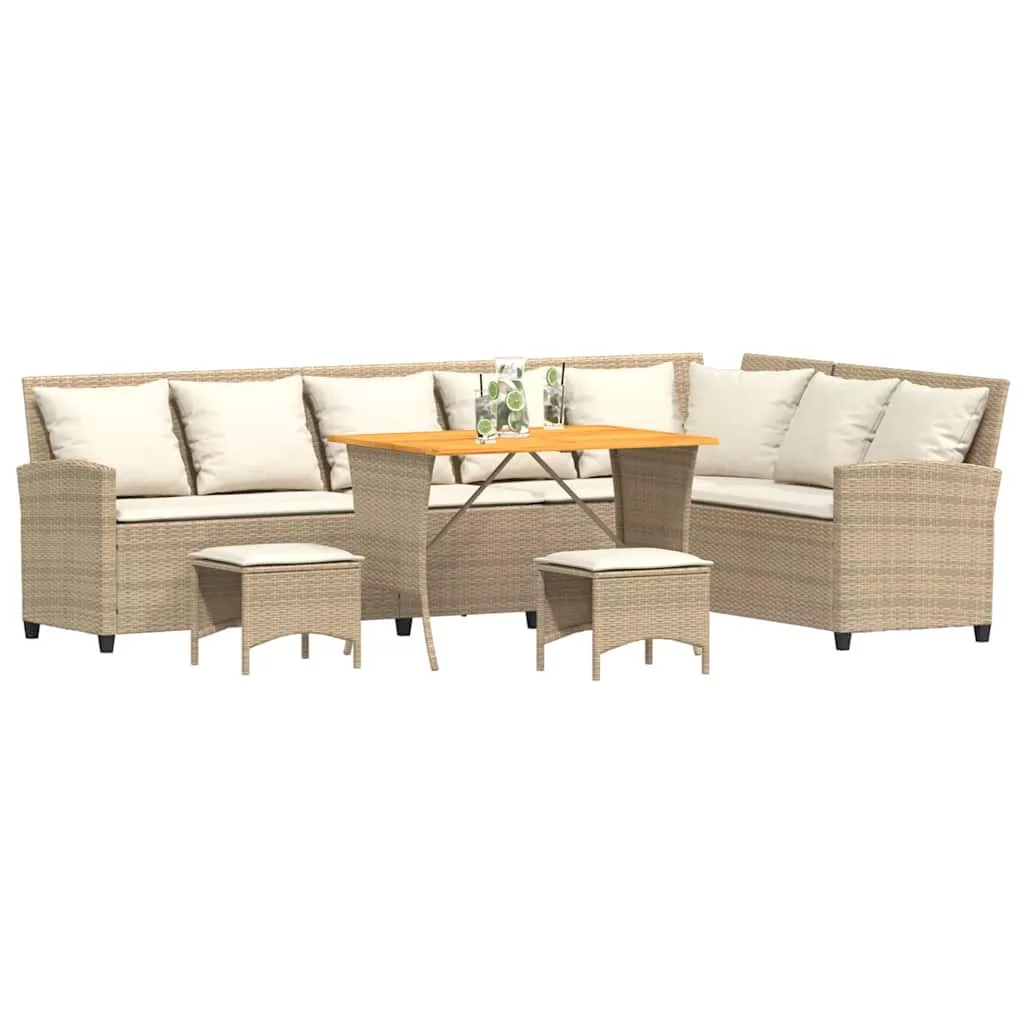 4 részes bézs polyrattan kerti ülőgarnitúra párnákkal L-alakú