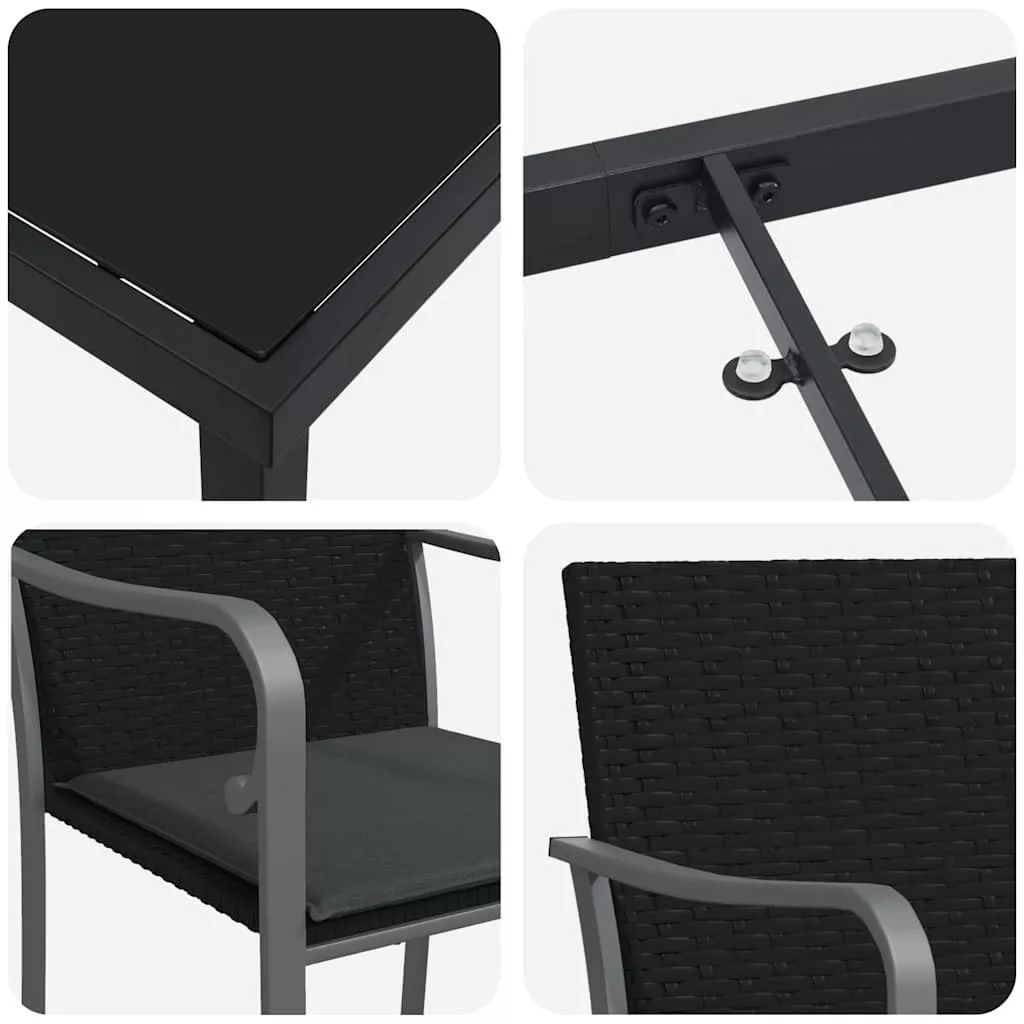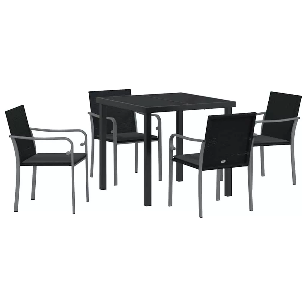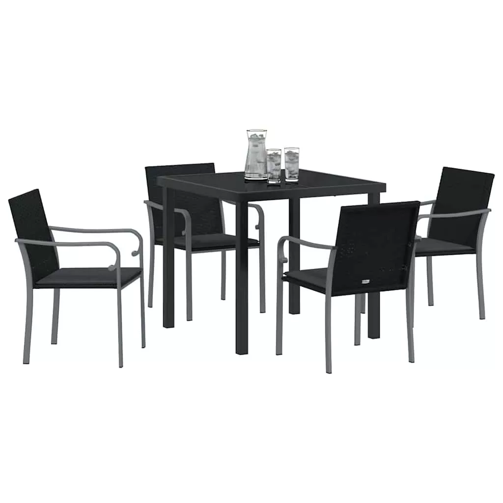 vidaXL Kert étkező szett 5 pcs Fekete és Szürke PE Rattan
