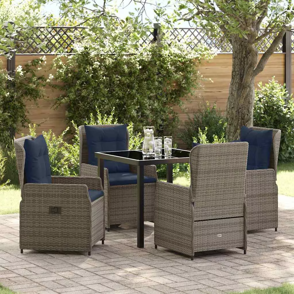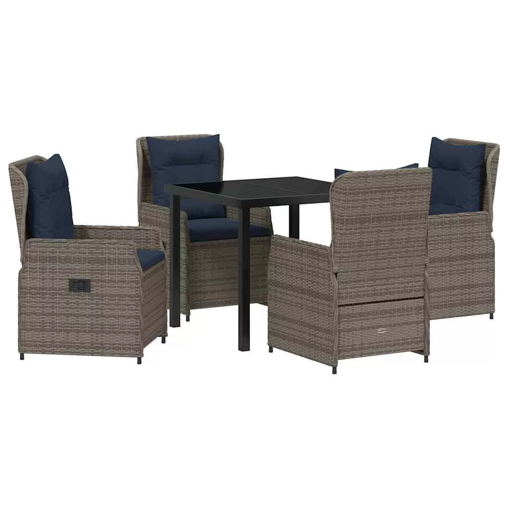 vidaXL Kert étkező szett 5 pcs Szürke Poli rattan