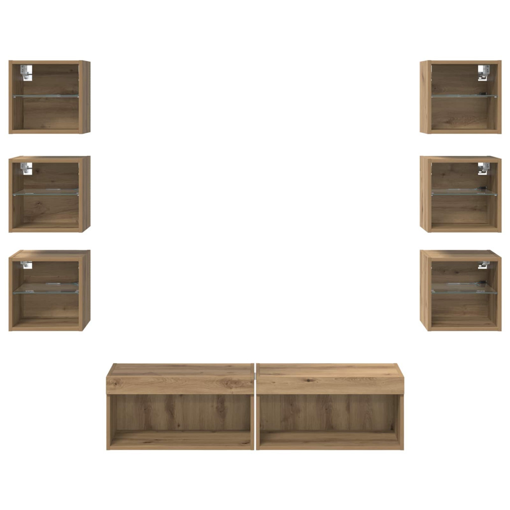 TV szekrény LED -es lámpákkal fiókkal 8 pcs Artisan tölgy Üveg