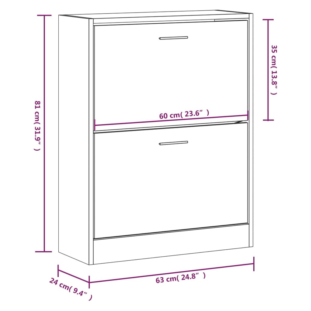 Ez a modern és stílusos kialakítású cipőszekrény kiváló bútor a cipők szervezett tárolásához. Alkalmas bejárathoz, folyosóra, nappaliba, hálószobába vagy bárhova, ahova helyezni szeretné. Tartós anyag: A szerelt fa kivételes minőségű, sima felületű, szilárd, stabil, és ellenáll a nedvességnek.Bőséges tárolóhely: Ez a cipőtartó 2 fiókkal rendelkezik, amelyek elegendő helyet biztosítanak a cipők kéznél tartásához és jól rendezetten tartásához.Lehúzható fiókos kialakítás: A lehúzható fiókos kialakításnak köszönhetően ez a cipőtároló szekrény könnyen nyitható és zárható. Megjegyzés:Az egyszerű összeszerelés érdekében minden termékhez mellékelünk összeszerelési útmutatót. Figyelem:A dőlés megakadályozása érdekében a terméket a mellékelt tartóelem segítségével rögzíteni kell a falhoz