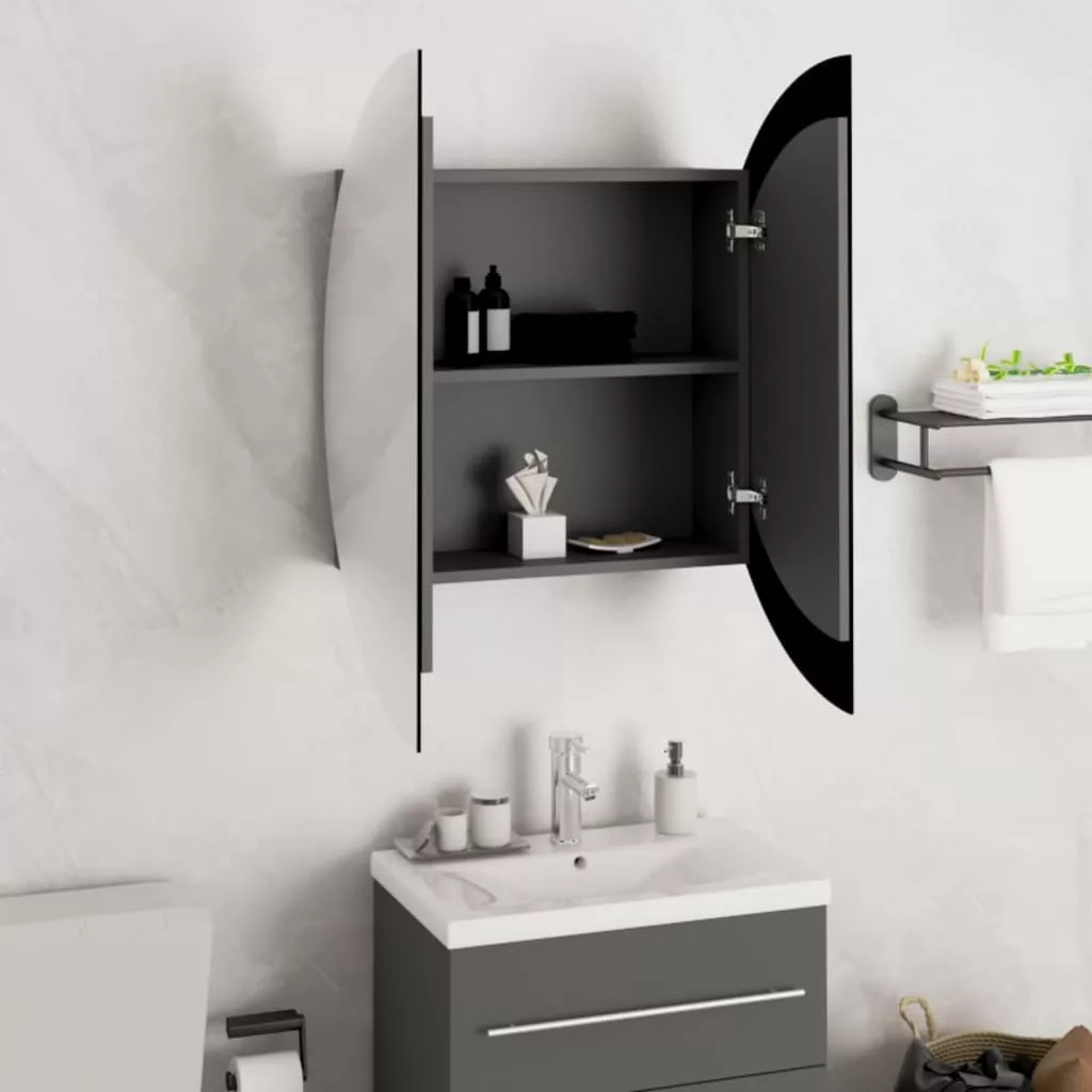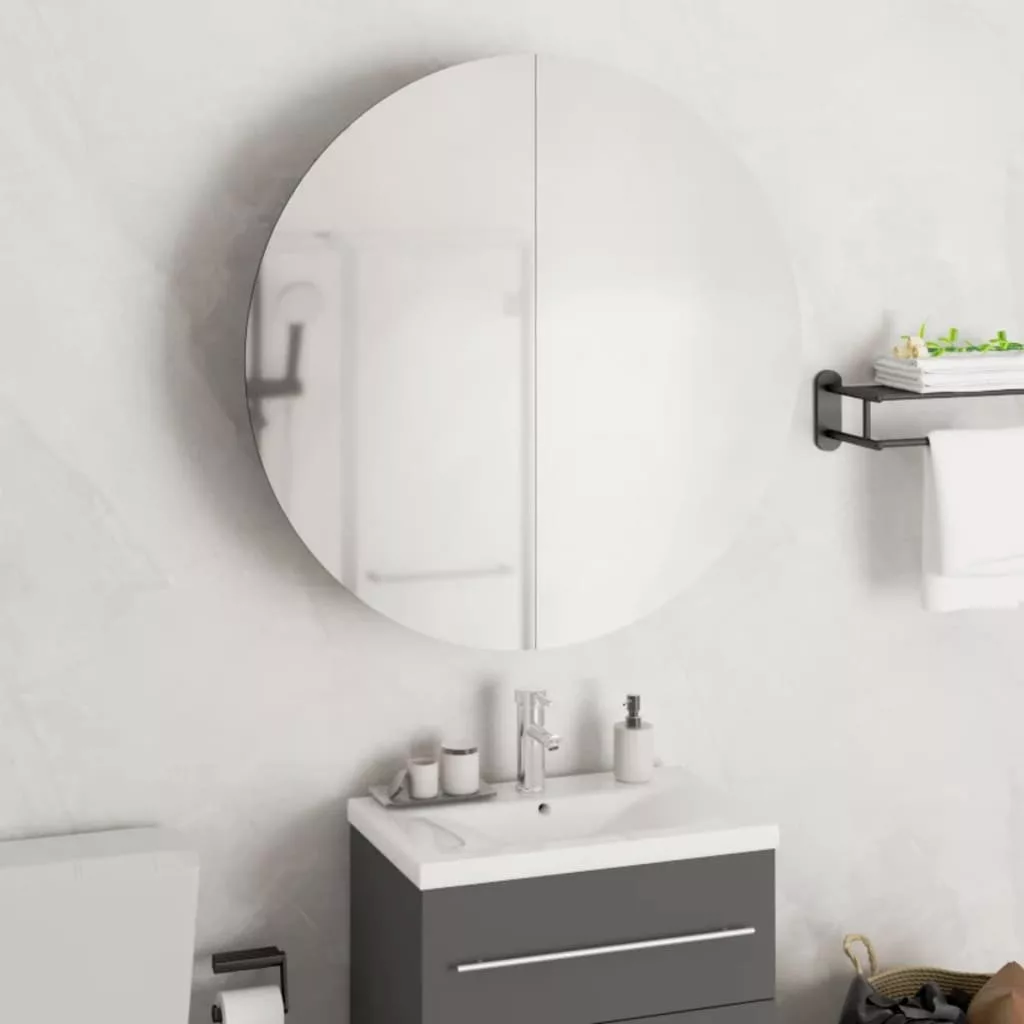 Tartsa rendezetten sminkkellékeit ezzel a divatos, kerek tükörrel és LED-del ellátott fürdőszobai szekrénnyel! Tartós anyag: A szerelt fa kivételes minőségű, sima felületű, szilárd, stabil, és ellenáll a nedvességnek. A szerelt fából készült LED-es tükrös szekrény könnyen tisztítható.Hasznos tükör: A gyönyörű tükör segít a sminkelésben, és elegánsabbá teszi a tükrös fürdőszobaszekrényt.LED-világítás: A faliszekrény USB-s LED-szállal lett ellátva a kényelmes használat érdekében.Bőséges tárolóhely: Ez a tükrös szekrény nagy rekeszekkel rendelkezik, amelyekben rendezetten tárolhatja különféle kellékei.Falra szerelhető kialakítás: A LED-es fürdőszobaszekrény falra szerelhető. Ezáltal maximalizálhatja a padlóterületet, és tisztán tarthatja a környezetét. Megjegyzés:Az egyszerű összeszerelés érdekében minden termékhez mellékelünk összeszerelési útmutatót.A falon belüli csavar(ok) és dugó(k) nem alaptartozékok. Keressen és használjon a falának megfelelő csavar(oka)t és dugó(ka)t. Ha bizonytalan, kérje szakember tanácsát. Gondosan olvassa el és kövesse a használati utasítás minden lépését.A termék USB-csatlakozóval rendelkezik és 5 V-os USB adaptert nem tartalmaz a csomag Kérjük, vegye figyelembe, hogy csak hitelesített DC 5V bemenetet használjon. Magasabb feszültség túlmelegedést okozhat, és kárt okozhat a készülékben, valamint tűz és túlmelegedés kockázatával járhat. Ez a készülék 14 éves vagy fiatalabb gyermekek, valamint olyan személyek által nem használható, akiknek csökkent fizikai, érzékszervi vagy mentális képességeik vannak, vagy akik tapasztalat és tudás hiányában vannak az elektronikus készülékek használatával kapcsolatban.