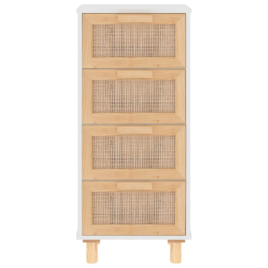 vidaXL fehér tömör fenyő/természetes rattan tálalószekrény 40x30x90 cm