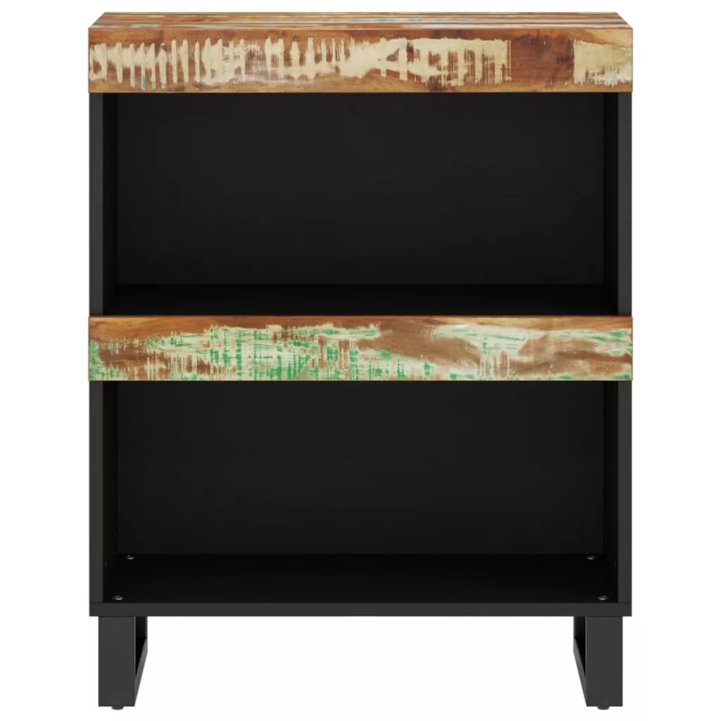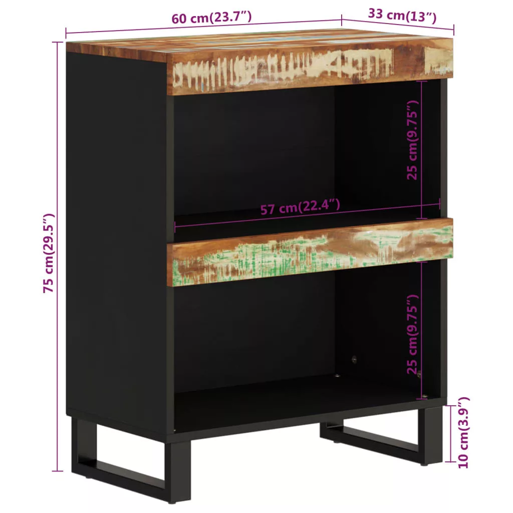 Minden élettér nélkülözhetetlen része: tálalószekrények! Vigye haza most rögtön ezt a fából készült tálalószekrény! Tömör újrahasznosított fa: A tömör újrahasznosított fa újrafelhasznált faanyagokból áll, például tíkfából, mangófából, fenyőfából és bükkfából. Ezeket a faanyagokat régi épületekből, például gyárakból, fészerekből és hajókból hasznosítják újra. Ez rendkívül környezetbarát megoldássá teszi a bútorgyártásban. Mivel minden darab kézzel készült és egyedi, a színek darabonként változhatnak. Találhat kék, zöld, és esetenként narancssárga, piros és rózsaszín árnyalatokat.Tágas tárolóhely: Ez az ágy melletti asztal bőséges helyet biztosít alapvető holmijai kézközelben történő rendezett tárolásához.Erős asztallap: Az éjjeliszekrény teteje biztonságos felületet nyújt rágcsálnivalók, italok, vázák, gyümölcskosarak és egyéb dísztárgyak számára.Vaslábak: Ennek a hálószobabútornak a vaslábai robusztusságot és a stabilitást biztosítanak. Jó tudni:A színe és erezete darabonként változhat, így minden bútordarab egyedi, és kissé eltér a többitől. A kiszállítás véletlenszerűen történik, biztosítva terméke exkluzivitását és egyediségét. Figyelem:A felborulás elkerülése érdekében ezt a terméket a mellékelt fali rögzítőeszközzel kell használni.
