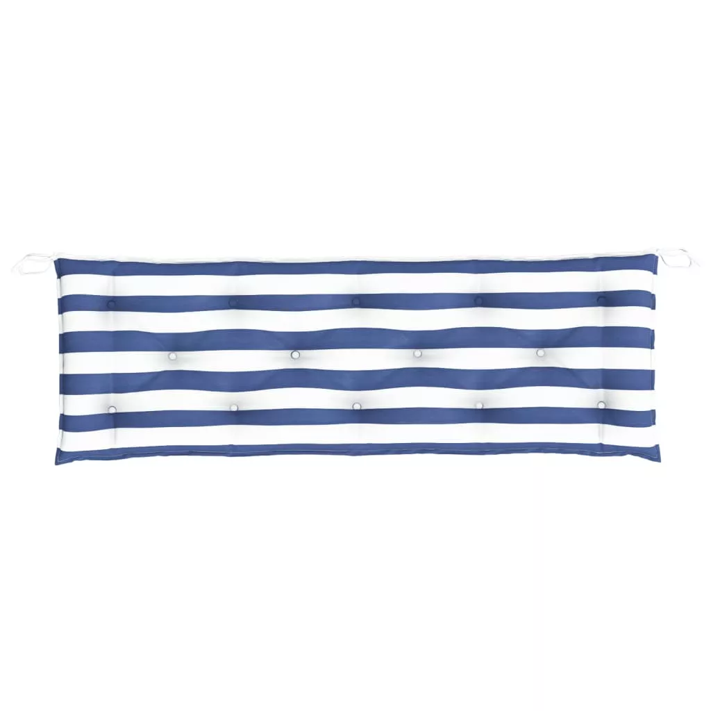 kék és fehér csíkos szövet kerti padpárna 150 x 50 x 7 cm