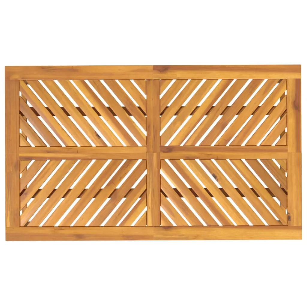 Ez a halszálkás rácsozatú kerti étkezőasztal kertje és terasza ideális kiegészítői lesz, és maradandó benyomást kelt! Tömör akácfa: A tömör akácfa egy gyönyörű, természetes anyag. Az akácfa egy trópusi keményfa, amely sűrű erezetű, stabil és tartós.Stabil váz: A faváz robusztussá és stabillá teszi az étkezőasztalt.Praktikus asztallap: A kültéri asztal masszív asztallapja tökéletes ételek, italok és egyéb dekorációs tárgyak elhelyezésére.Elegáns kialakítás: A fa étkezőasztal jellegzetes átlós lécmintája mindenki figyelmét felkelti. Megjegyzés:A kültéri bútor szépségének megőrzése érdekében javasoljuk, hogy vízálló huzattal fedje be. Maximum 110 kg ülésenként.