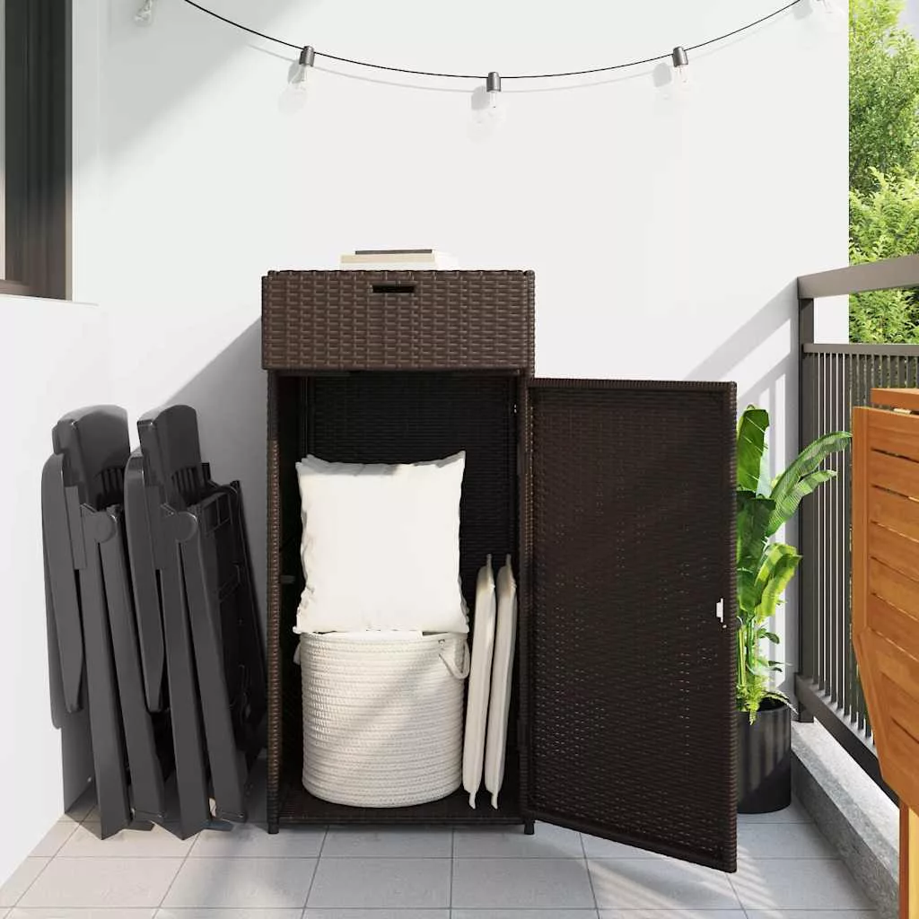 barna polyrattan kerti tárolószekrény 55 x 55 x 111 cm