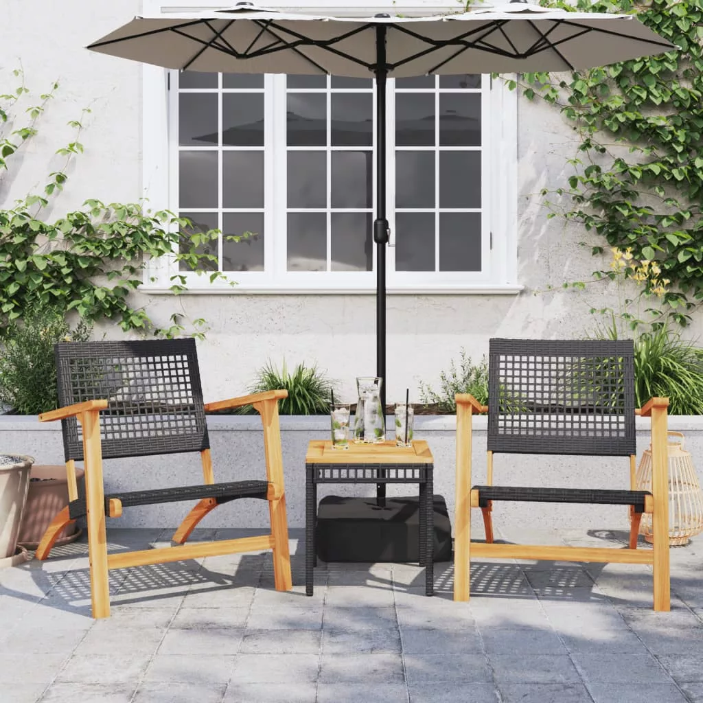 Pihenjen és élvezze a szabad levegőt ezeken a kényelmes kerti székeken! Tartós anyag: A PE rattan, más néven polyrattan, egy erős, kevés karbantartást igénylő szintetikus anyag, amely úgy néz ki, mint a természetes rattan. Könnyű, könnyen tisztítható, tartóssága és időjárásálló tulajdonságai miatt gyakran használják kültéri bútorok készítéséhez.Kényelmes ülésélmény: A támasztó háttámlával és fa karfákkal rendelkező kerti szék a lehető legnagyobb kényelmet nyújtja.Robusztus és stabil váz: A fém és fa váz biztosítja, hogy a kerti bútor erős és stabil legyen a mindennapi kültéri használathoz. Jó tudni:A kültéri bútor szépségének megőrzése érdekében javasoljuk, hogy vízálló huzattal fedje be. Maximum 110 kg ülésenként.
