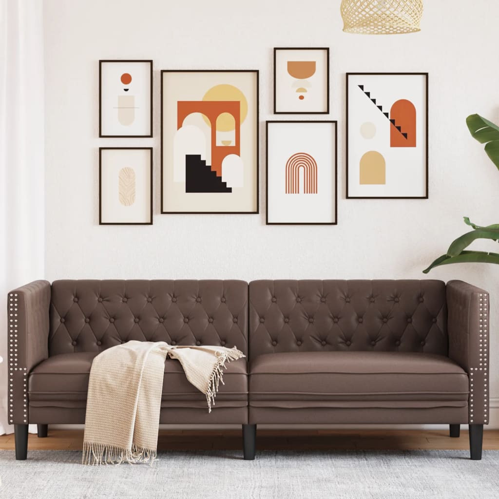 Ez a 3 személyes chesterfield kanapé kiváló hely a beszélgetéshez, olvasáshoz, tévézéshez vagy akár pihenéshez. Célja, hogy otthona fókuszpontja lesz. Hosszú élettartam és egyszerű gondozás: A műbőr rendkívül tartós anyag, amely ellenáll a foltoknak, így könnyen tisztítható egy nedves ruhával. Sima felülete a valódi bőrre emlékeztető elegáns megjelenést biztosít.Kényelmes ülésélmény: A kanapé rendkívül kényelmes a vastagon párnázott üléseknek, karfáknak és hátpárnáknak köszönhetően.Chesterfield stílus: A klasszikus gombokkal tűzdelt háttámlával és karfákkal, valamint az egységes hát- és karmagassággal a kanapé minden helyiséget feldob, stílust és kényelmet biztosítva.Tömör lábak: A kárpitozott fotelt erős lábak tartják, amelyek stabilitást, biztonságot, és szilárdságot biztosítanak.