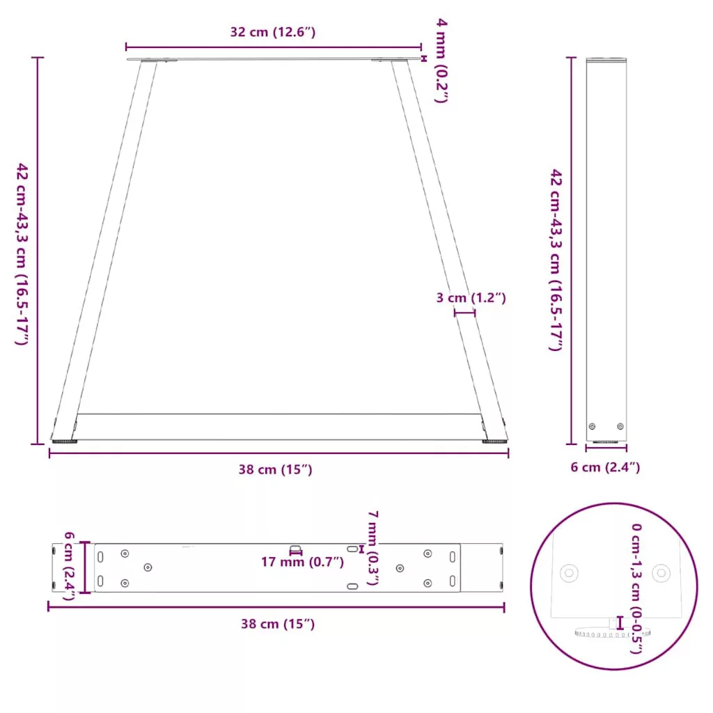 Ezek a dohányzóasztal lábak ötvözik a formát és a funkciót. Ideális választás dohányzóasztala személyre szabásához. Tartós anyag: Ez a dohányzóasztal láb porszórt acélból készült, így masszív és hosszú élettartamú.Praktikus kialakítás: Ez a dohányzóasztal láb állítható szintezőkkel rendelkezik, amelyek stabilitást biztosítanak még egyenetlen padlón is, és minimalizálják a padló karcolódását. Ezenkívül a konzol előre fúrt lyukakkal és a szállítási terjedelemben mellékelt csavarokkal rendelkezik, amelyekkel a láb az asztallaphoz rögzíthető (nem tartozék), így könnyen összeszerelhető.Modern esztétika: Az asztalláb letisztult és modern megjelenést kölcsönöz. Letisztult vonalai és geometrikus kialakítása fokozza a bútor összképét. Jó tudni:A szállítás csak az asztallábakat tartalmazza, az asztallap nem része a csomagnak.