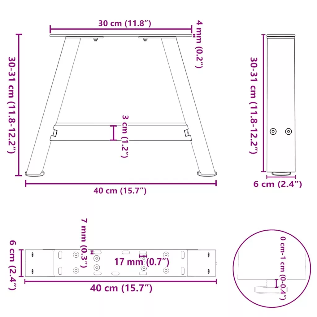 2 db antracitszürke A-alakú acél dohányzóasztal láb 40x(30-31) cm