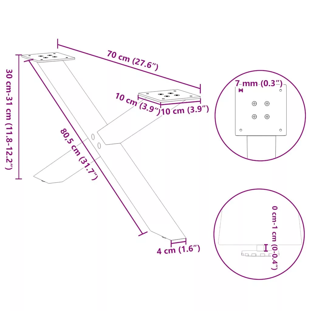 2 db X alakú natúr acél dohányzóasztal láb 70x(30-31) cm