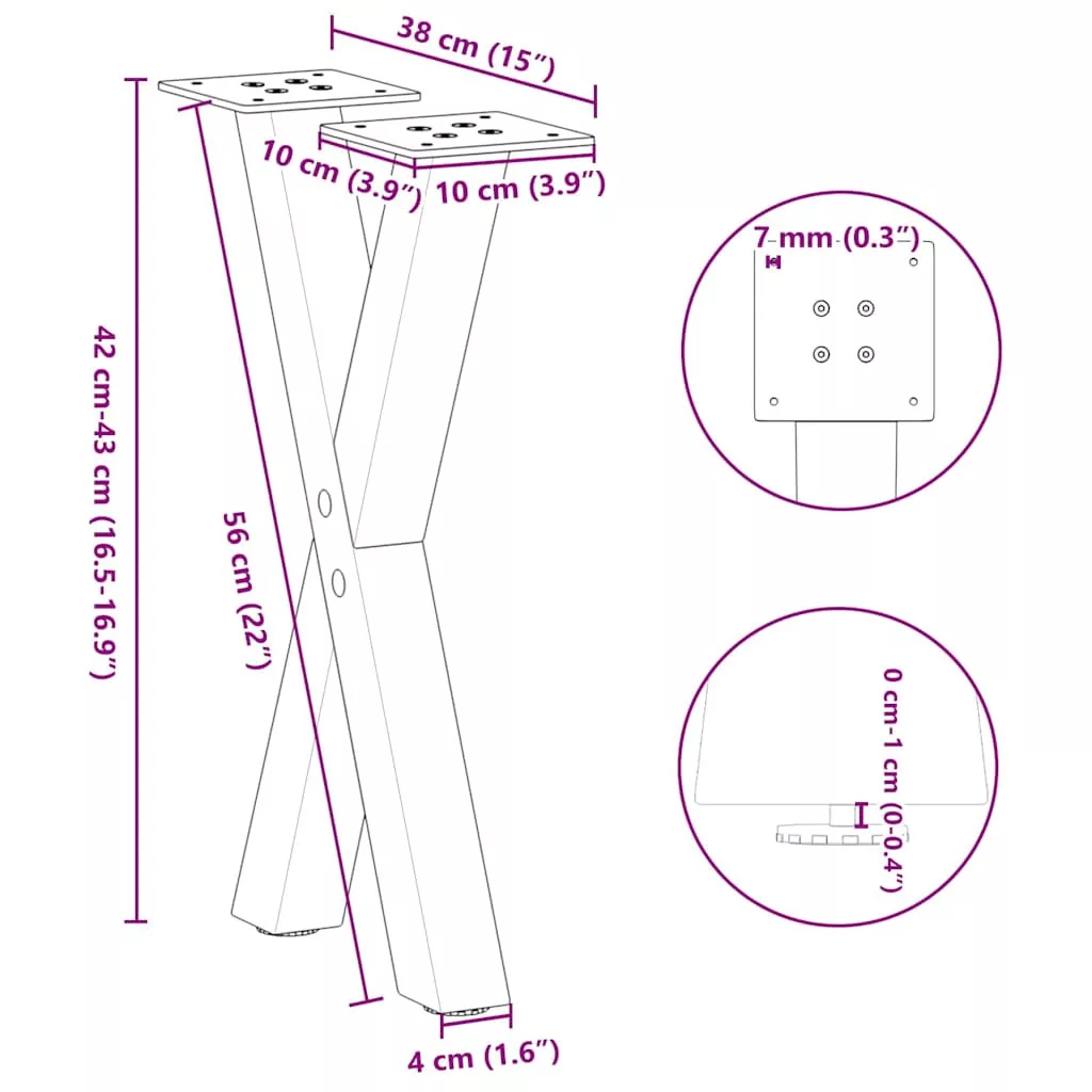 Ezek a dohányzóasztal lábak ötvözik a formát és a funkciót. Ideális választás dohányzóasztalod személyre szabásához. Tartós anyag: Ez a bútorasztal láb porszórt acélból készült, így masszív és hosszú élettartamú.Masszív szerkezet: A fém asztalláb X alakú kialakítása biztosítja, hogy elbírja a nehéz asztallapot is.Praktikus kialakítás: Ez az asztalláb állítható lábszintezőkkel rendelkezik, amelyek stabilitást biztosítanak még egyenetlen padlón is, és minimalizálják a padló karcolódását. Ezenkívül a konzol előre fúrt lyukakkal és a szállításban mellékelt csavarokkal rendelkezik, amelyekkel a láb az asztallaphoz rögzíthető (nem tartozék), így könnyen összeszerelhető.Modern esztétika: Az asztalláb letisztult vonalakkal és geometrikus kialakítással rendelkezik, hogy javítsa a bútor összképét. És bármilyen megfelelő méretű asztallaphoz jól illik. Jó tudni:A szállítmány csak az asztallábakat tartalmazza, az asztallap nem.