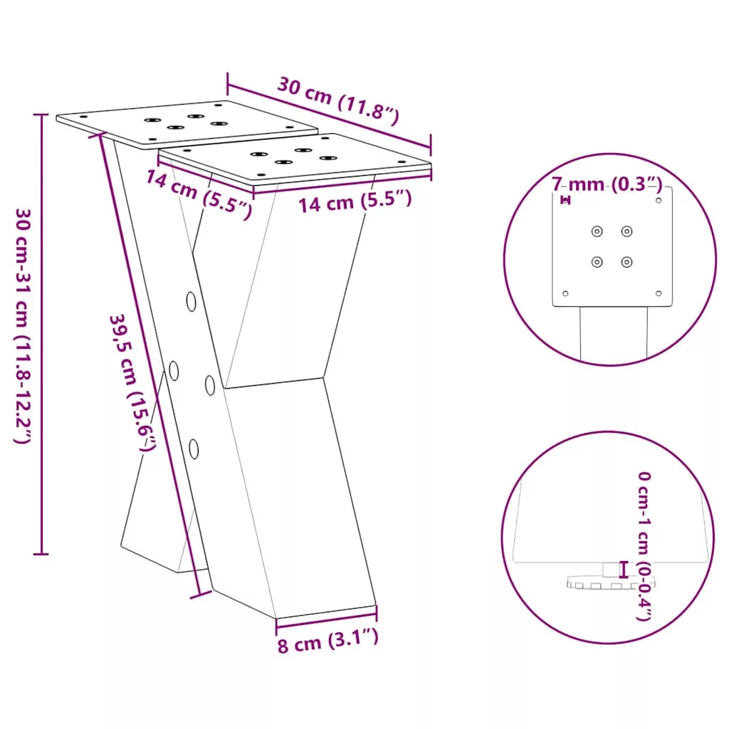 2 db X alakú natúr acél dohányzóasztal láb 30x(30-31) cm
