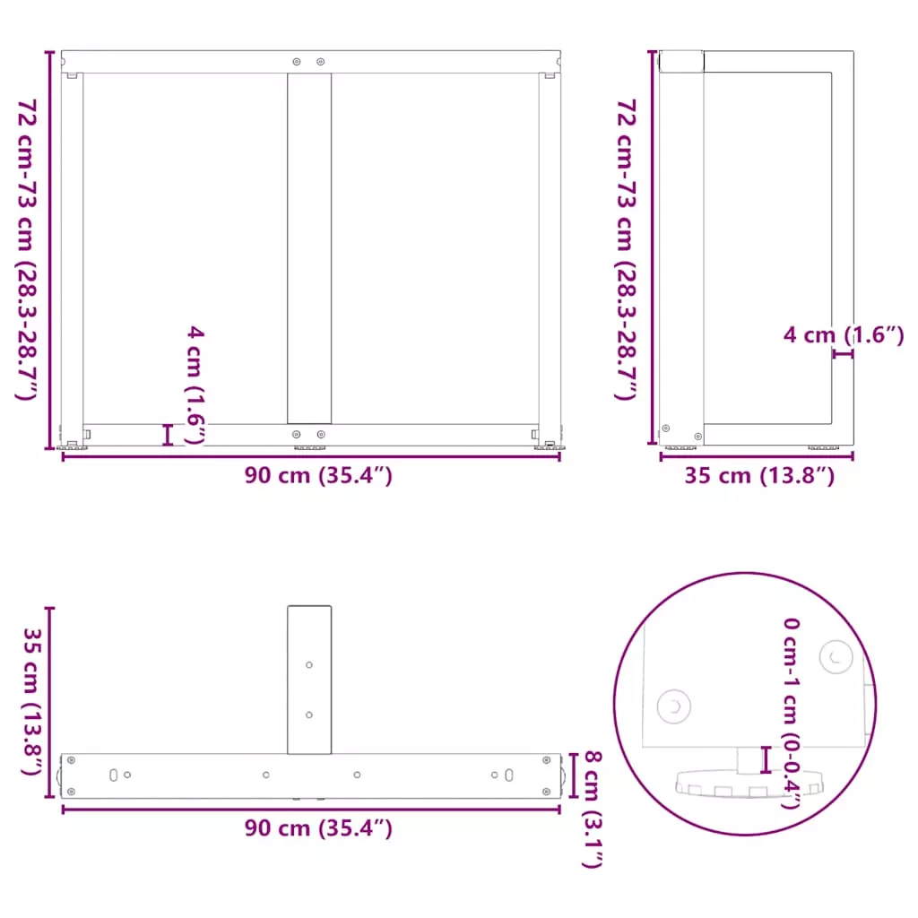 2 db antracitszürke, T-alakú acél étkezőasztal láb 90x35x(72-73) cm