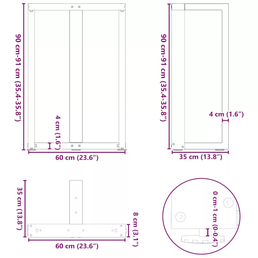 vidaXL 2 db antracitszürke T-alakú acél bárasztalláb 60x35x(90-91) cm
